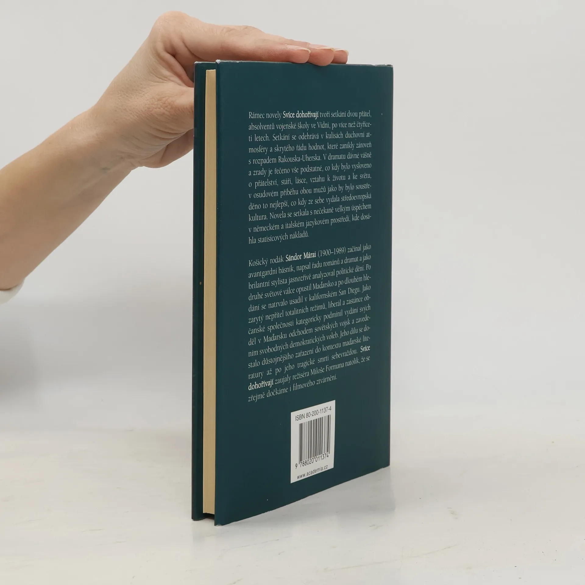 Po 2. světové válce emigroval Sándor Márai (1900 1989) do USA, odkud nesmiřitelně komentoval události ve své vlasti a v celém komunistickém táboře. I proto jeho prozaické dílo možná vždy vzbuzovalo větší pozornost svým politickým pozadím než literárními hodnotami. V novele Svíce dohořívají z roku 1942 jako by autor koncentroval vše dobré a krásné, co kdy literatura Rakousko-Uherska evropské kultuře dala, a především vše, co lze říci o přátelství, stáří, lásce, vztahu k životu a ke světu. Nové vydání této knihy po šedesáti letech se stalo velkou událostí v řadě evropských zemí a novela Svíce se dohořívají stala i předlohou nejnovějšího filmového scénáře režiséra Miloše Formana.