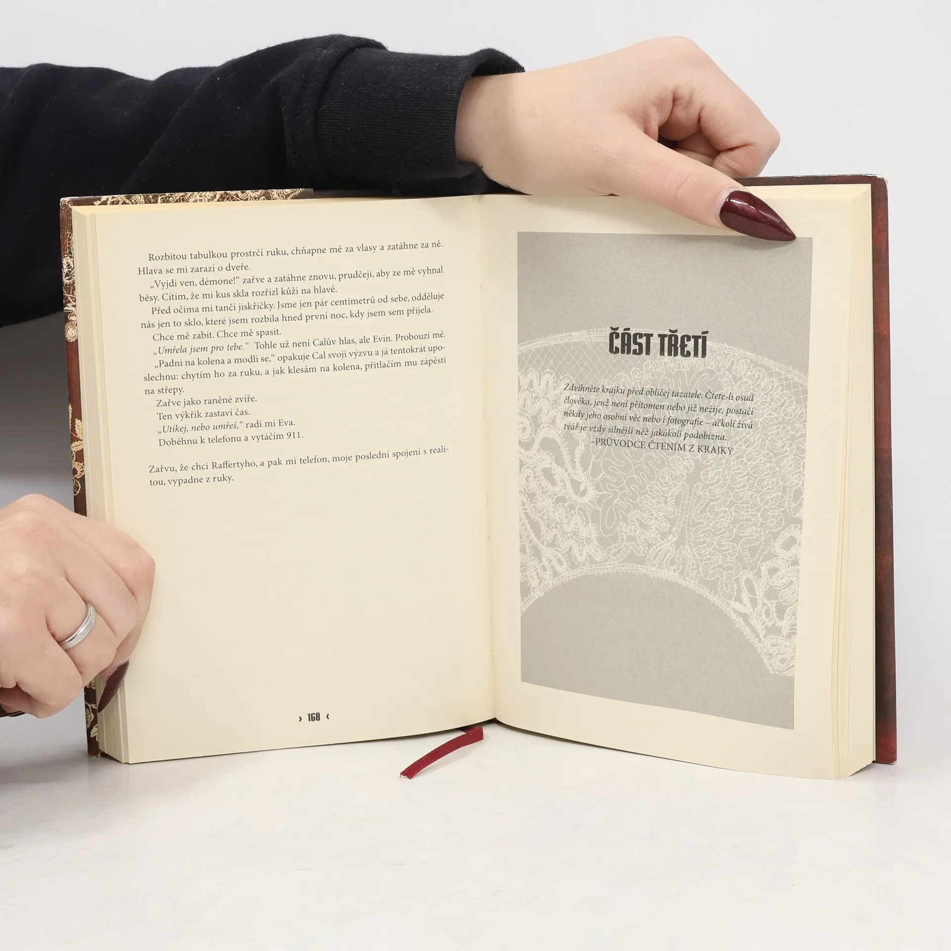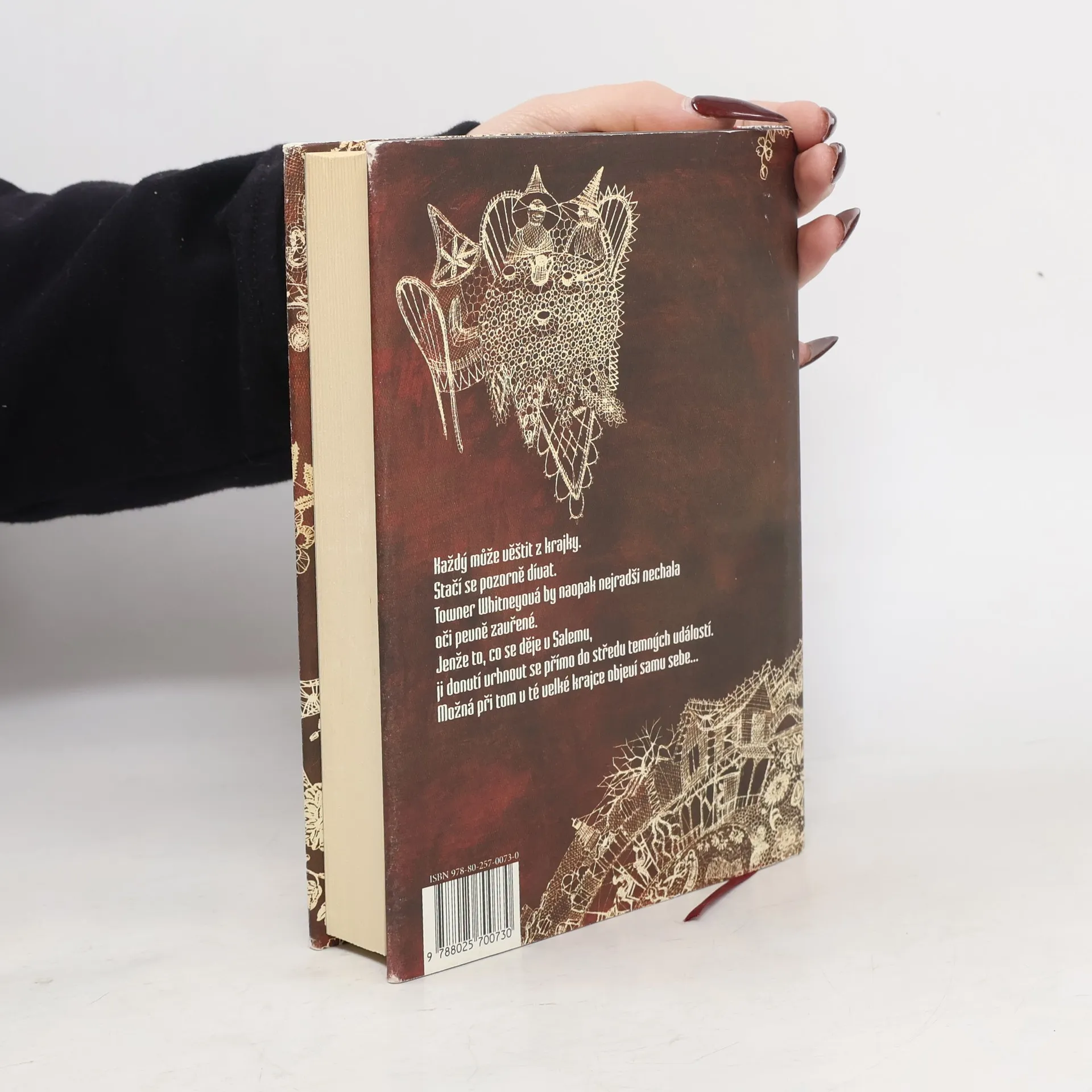 Strhující a překvapivě vypointovaný román o novodobém honu na čarodějnice. Towner Whitneyová se narodila v americkém městě Salem, které neblaze proslulo čarodějnickými procesy v 17. století. Na konci 20. století by se mohlo zdát, že doba slepých vášní a hořících hranic je dávno pryč. Jenže není… Towner je z rodu Whitneyů a ovládá magickou schopnost věštit z krajky. Když se dozví, že zmizela její milovaná prateta Eva, musí překonat sama sebe, vrátit se do Salemu a napřít všechny síly k tomu, aby odhalila, co se vlastně stalo. Jak zjistí ona i čtenáři, tajemství dlí hlouběji, než by kdokoliv čekal, a při jeho odhalování půjde o všechno. Nevšední a dramatický příběh ze současnosti je pro čtenáře stejně uhrančivý, jako je pro ženy z rodu Whitneyů pohled do spletitého vzoru salemské krajky. Autorka románu Brunonia Barryová sklidila se svou prvotinou bouřlivé ovace amerického čtenářského publika.