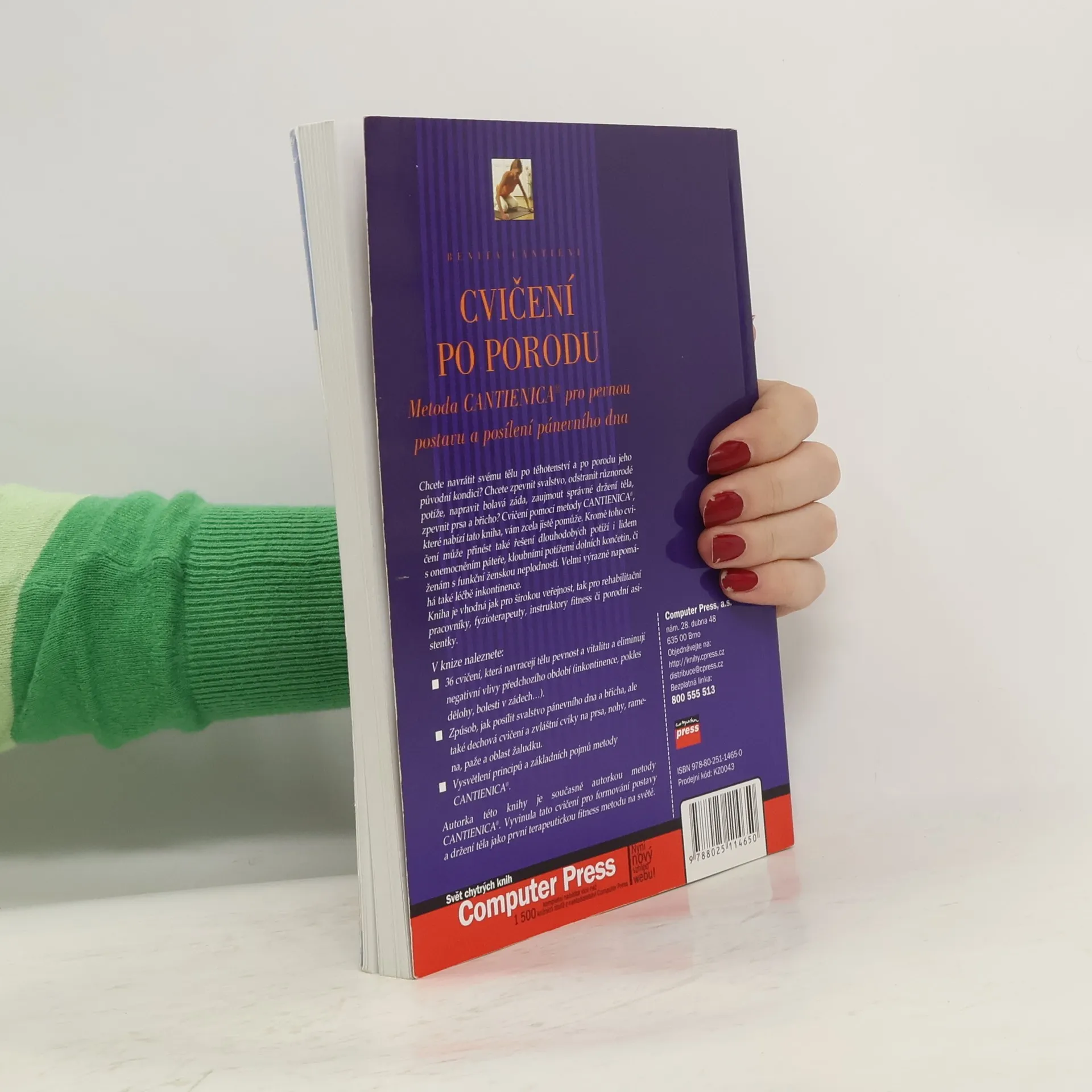 Chcete po těhotenství navrátit svému tělu původní kondici? Cvičení metodou CANTIENICA vám pomůže zpevnit svalstvo, odstranit potíže s bolestmi zad, zlepšit držení těla a posílit prsa a břicho. Tato metoda je také účinná při řešení dlouhodobých problémů, jako jsou onemocnění páteře, kloubní potíže dolních končetin a funkční ženská neplodnost. Významně přispívá i k léčbě inkontinence. Kniha je určena široké veřejnosti i odborníkům, jako jsou rehabilitační pracovníci, fyzioterapeuti, instruktoři fitness a porodní asistentky. Obsahuje 36 cvičení, která navracejí tělu pevnost a vitalitu a eliminují negativní vlivy předchozího období, jako jsou inkontinence, pokles dělohy a bolesti zad. Naučíte se posilovat svalstvo pánevního dna a břicha, provádět dechová cvičení a speciální cviky na prsa, nohy, ramena, paže a oblast žaludku. Kniha rovněž vysvětluje principy a základní pojmy metody CANTIENICA. Autorka, zakladatelka této metody, vyvinula první terapeutickou fitness metodu na světě pro formování postavy a správné držení těla.