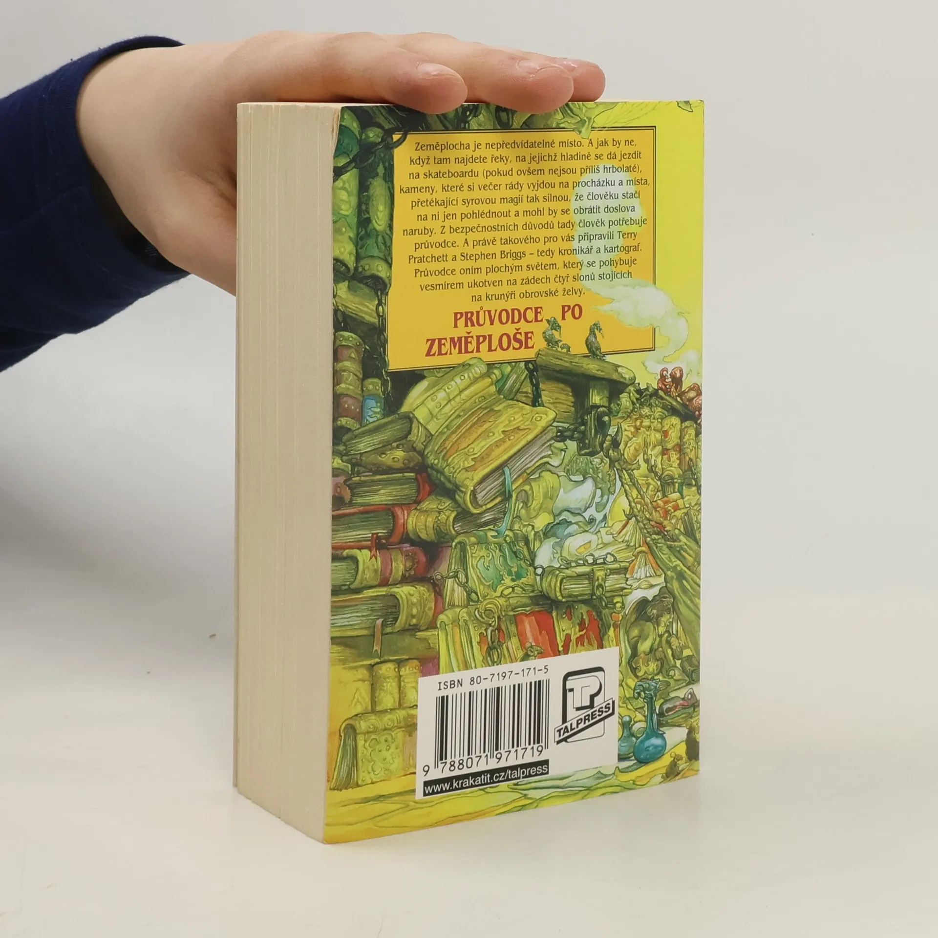 Zeměplocha je nepředvídatelné místo. A jak by ne, když tam najdete řeky, na jejichž hladině se dá jezdit na skateboardu (pokud ovšem nejsou příliš hrbolaté), kameny, které si večer rády vyjdou na procházku a místa, přetékající syrovou magií tak silnou, že člověku stačí na ni jen pohlédnout a mohl by se obrátit doslova naruby. Z bezpečnostních důvodů tady člověk potřebuje průvodce. A právě takového pro vás připravili Terry Pratchett a Stephen Briggs – tedy kronikář a kartograf. Průvodce oním plochým světem, který se pohybuje vesmírem ukotven na zádech čtyř slonů stojících na krunýři obrovské želvy.
