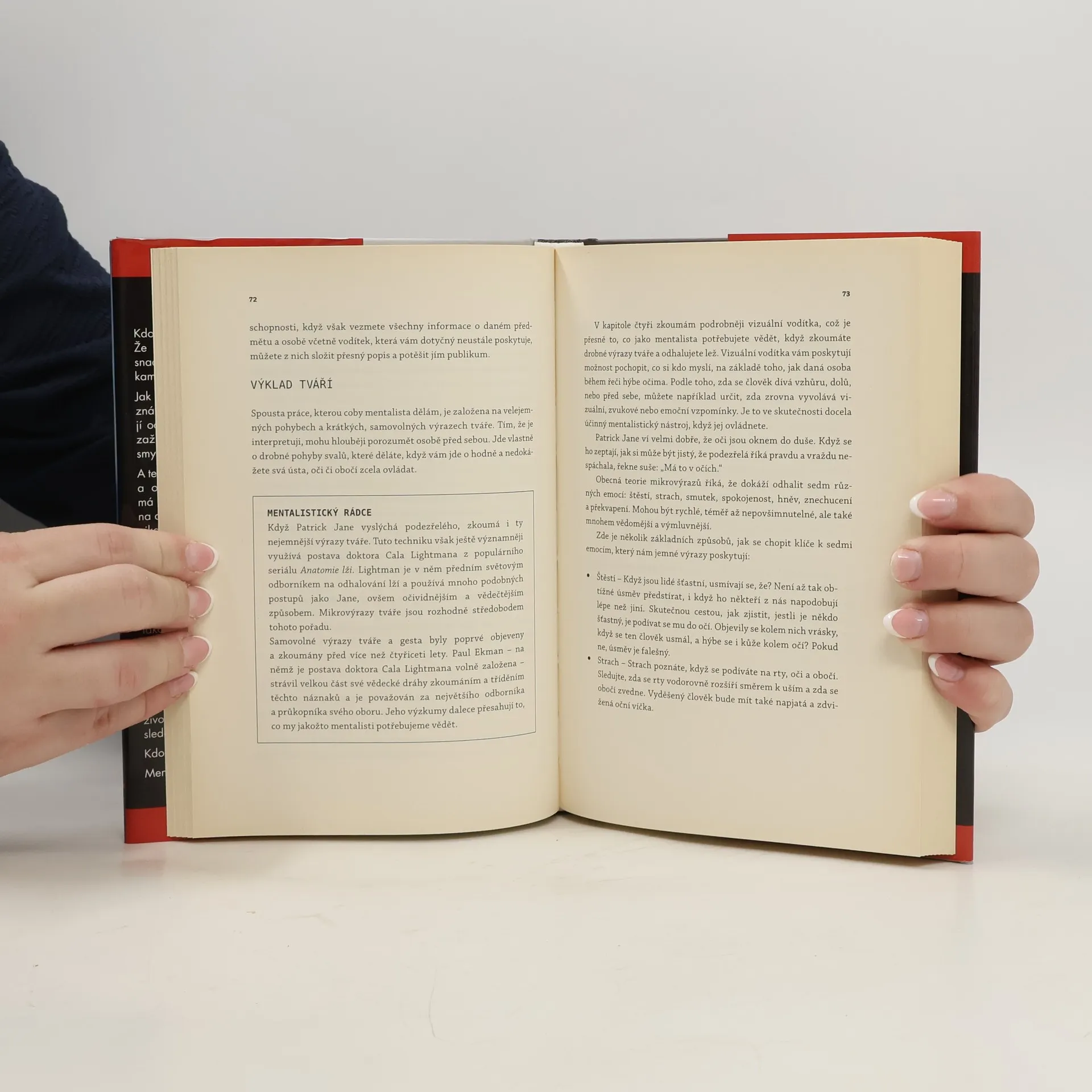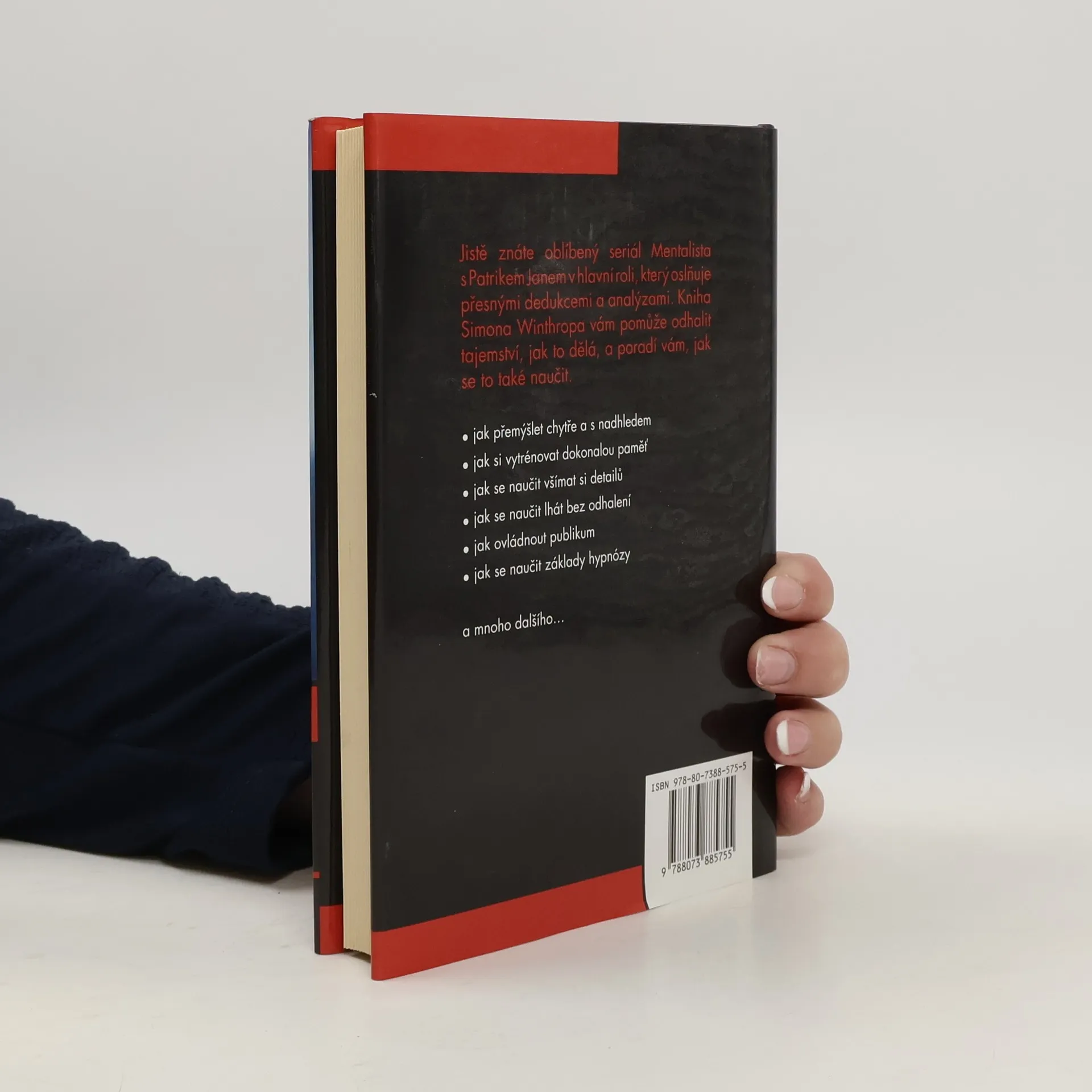 Kniha na motivy úspěšného stejnojmeného seriálu s Patrikem Janem v hlavní roli. Autor knihy Simon Winthrop si klade za cíl čtenáře seznámit s rolí Mentalisty, pochopit, jak pracuje a jaké má zvyky. Naučíte se technikám a metodám, které Mentalista používá. Jak rozumět neverbální komunikaci? Jak funguje meditace? A hypnóza? Jak a při jakých příležitostech lze nové techniky procvičovat? Originální příručka, na jejímž konci budete schopni číst v ostatních takřka jako v otevřené knize. Kniha, která nadchne nejen fanoušky původního seriálu, ale kohokoli, koho láká proniknout do tajů psychologie a lépe se zorientovat v chování lidí.