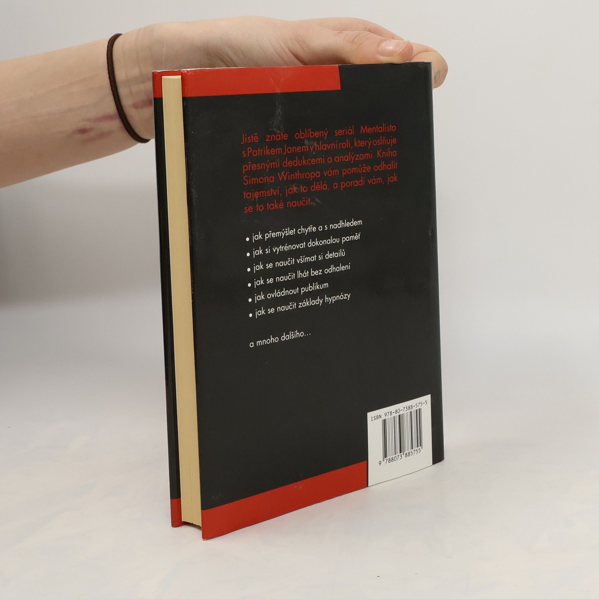 Kniha na motivy úspěšného stejnojmeného seriálu s Patrikem Janem v hlavní roli. Autor knihy Simon Winthrop si klade za cíl čtenáře seznámit s rolí Mentalisty, pochopit, jak pracuje a jaké má zvyky. Naučíte se technikám a metodám, které Mentalista používá. Jak rozumět neverbální komunikaci? Jak funguje meditace? A hypnóza? Jak a při jakých příležitostech lze nové techniky procvičovat? Originální příručka, na jejímž konci budete schopni číst v ostatních takřka jako v otevřené knize. Kniha, která nadchne nejen fanoušky původního seriálu, ale kohokoli, koho láká proniknout do tajů psychologie a lépe se zorientovat v chování lidí.