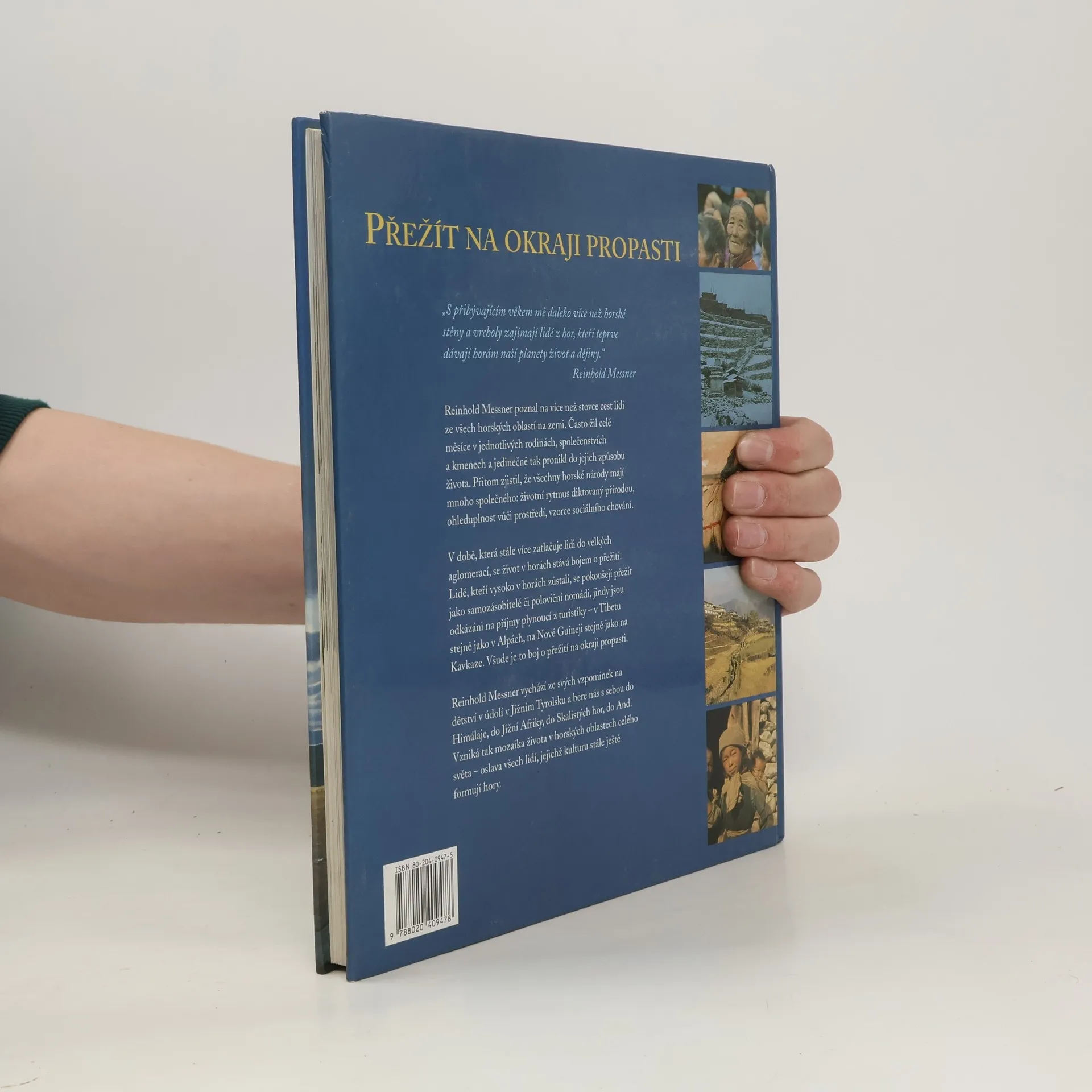 Výpravná velkoformátová obrazová publikace je výsledkem autorova putování po horách celého světa. Nejde však jen o seznámení s horskými krajinami, ale především o zážitky ze setkání s jejími obyvateli. Messner si uvědomil, že všechny horské národy mají mnoho společného: přírodou diktovaný rytmus života, sociální vzory chování nebo zacházení se zásobami. Tak vzniká pozoruhodná mozaika života v horách celého světa – pocta všem těm lidem, jejichž kultura zůstává ovlivněna horami.Publikace obsahuje mnoho barevných fotografií.