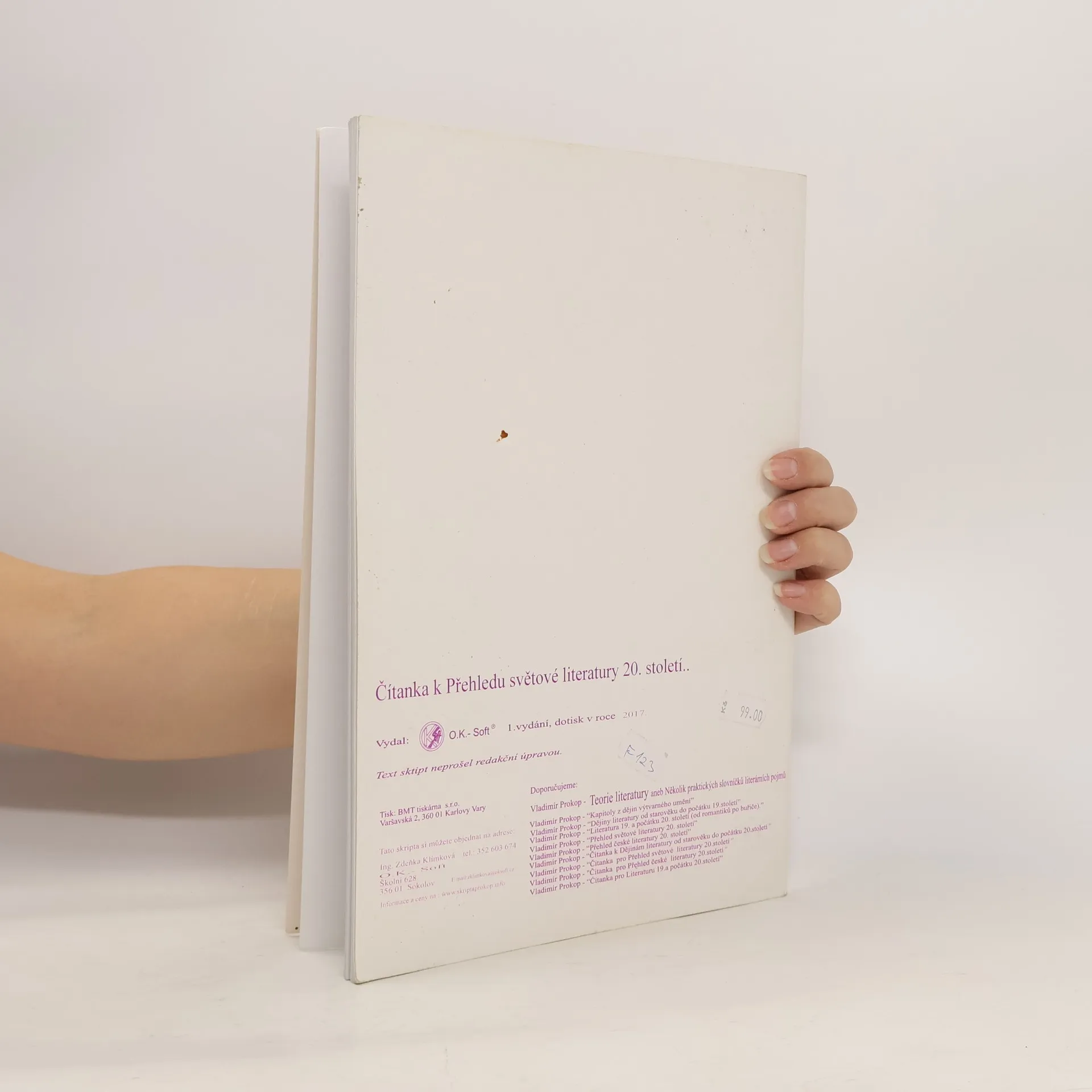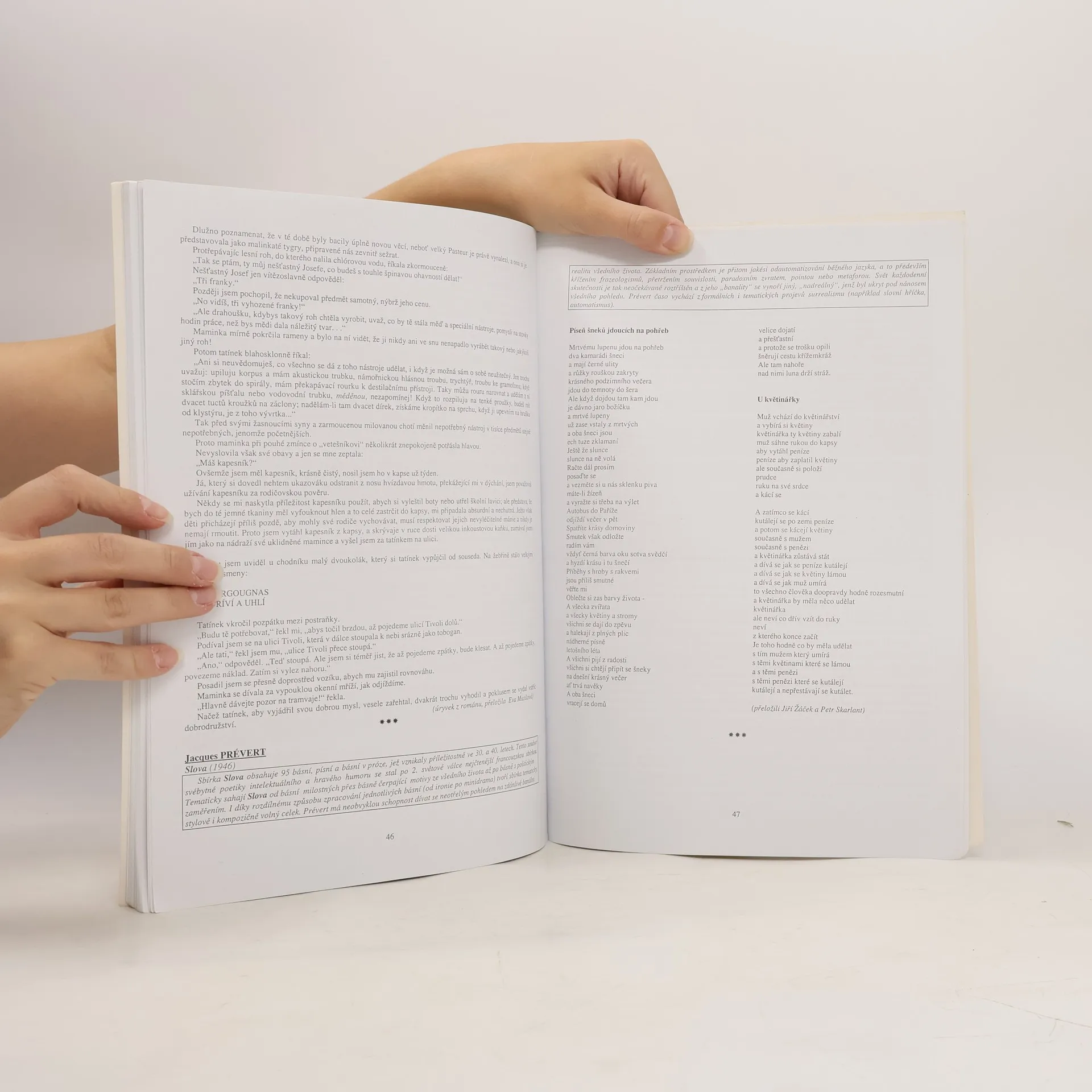 Čítanka k Přehledu světové literatury 20. století je koncipována tak, aby vytvářela logický celek se svou "mateřskou" publikaci. Nejen výběr, ale rovněž i chronologické řazení ukázek jsou determinovány zmíněnými skripty, a to tak, aby bylo vyváženě pokryto celé časové období. Z praktického hlediska by bylo užitečné znát následující skutečnosti: 1. V čítance nenaleznete zbytečně dlouhé texty, jejich rozsah se snaží respektovat časové možnosti v hodině českého jazyka. 2. Otázky a náměty k diskusi, které doprovázejí každý celek, jsou chápány jen jako pomoc studentům (popřípadě i učitelům), v žádném případě nechtějí suplovat vlastní aktivitu vyučujícího. 3. Není třeba si hrát na vševědoucího, a tak je počítáno s tím, že mnohé úkoly budou řešeny s pomocí odborných publikací (zejména slovníkového charakteru). Už jen vlastní schopnost orientovat se v sekundární literatuře je nezaplatitelnou předností. Časově nenáročné texty, obsahy všech uvedených prozaických děl, nespočet úkolů a námětů k diskusi.