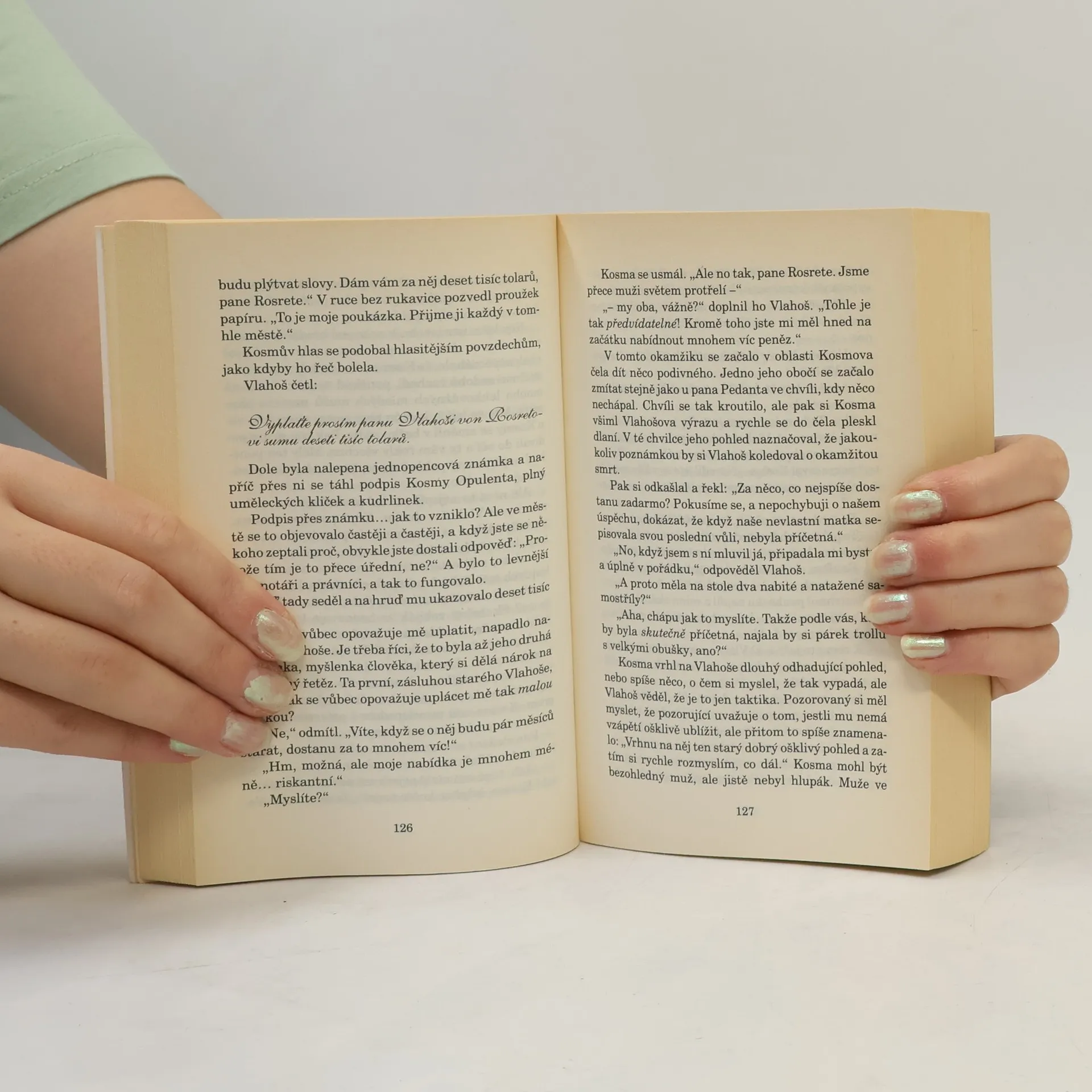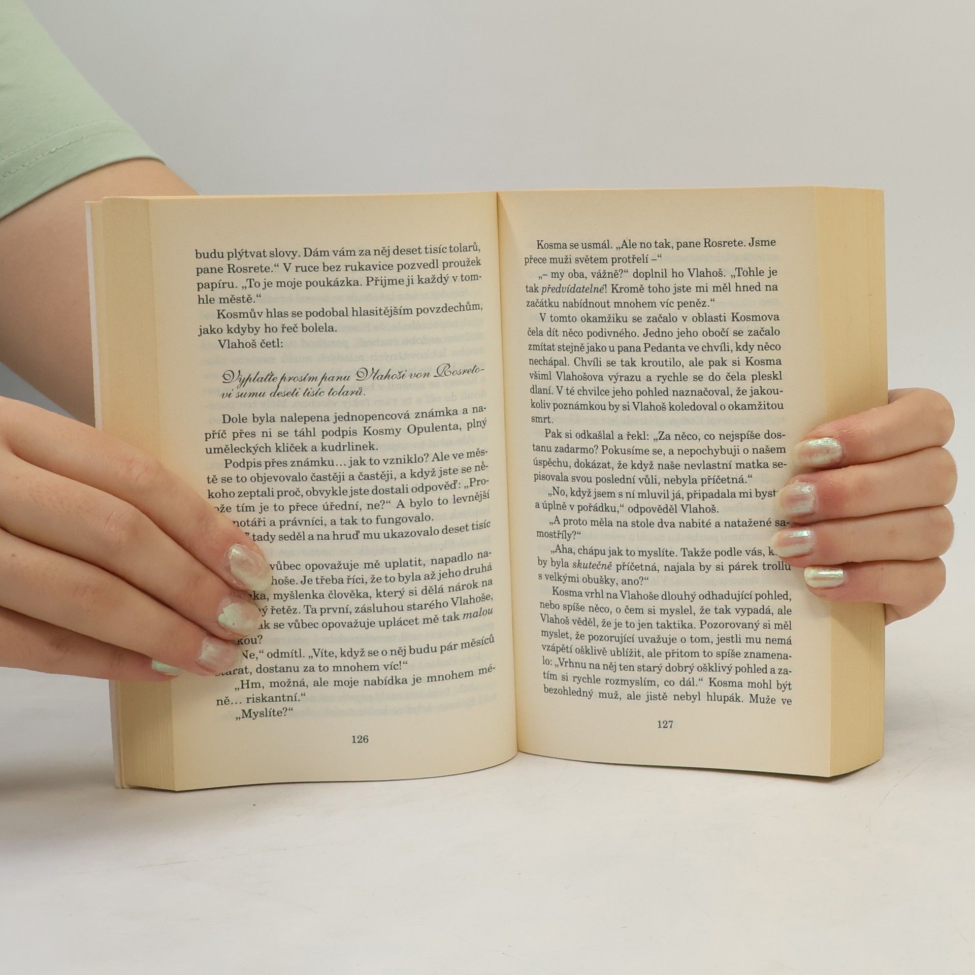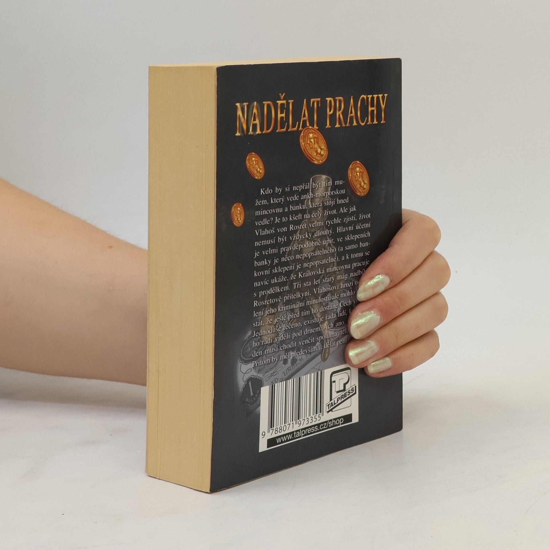 Kdo by si nepřál být tím mužem, který vede ankh-morporskou mincovnu a banku, která stojí hned vedle? Je to kšeft na celý život. Ale jak Vlahoš von Rosret velmi rychle zjistí, život nemusí být vždycky dlouhý. Hlavní účetní je velmi pravděpodobně upír, ve sklepeních banky je něco nepopsatelného (a samo bankovní sklepení je nepopsatelné), a k tomu navíc se ukáže, že Královská mincovna pracuje s prodělkem. Tři sta let starý mág nadbíhá Rosretově přítelkyni, Vlahošovi hrozí odhalení jeho kriminální minulosti, ale mohlo by se stát, že ještě před tím ho dostane Cech vrahů. Jednoduše řečeno, existuje řada lidí, kteří by ho rádi viděli pod drnem. Ach ano. A každý den musí chodit venčit spolumajitele banky. Přitom by měl především... dělat peníze! Úžasná Zeměplocha, kniha 32., přeložil Jan Kantůrek.