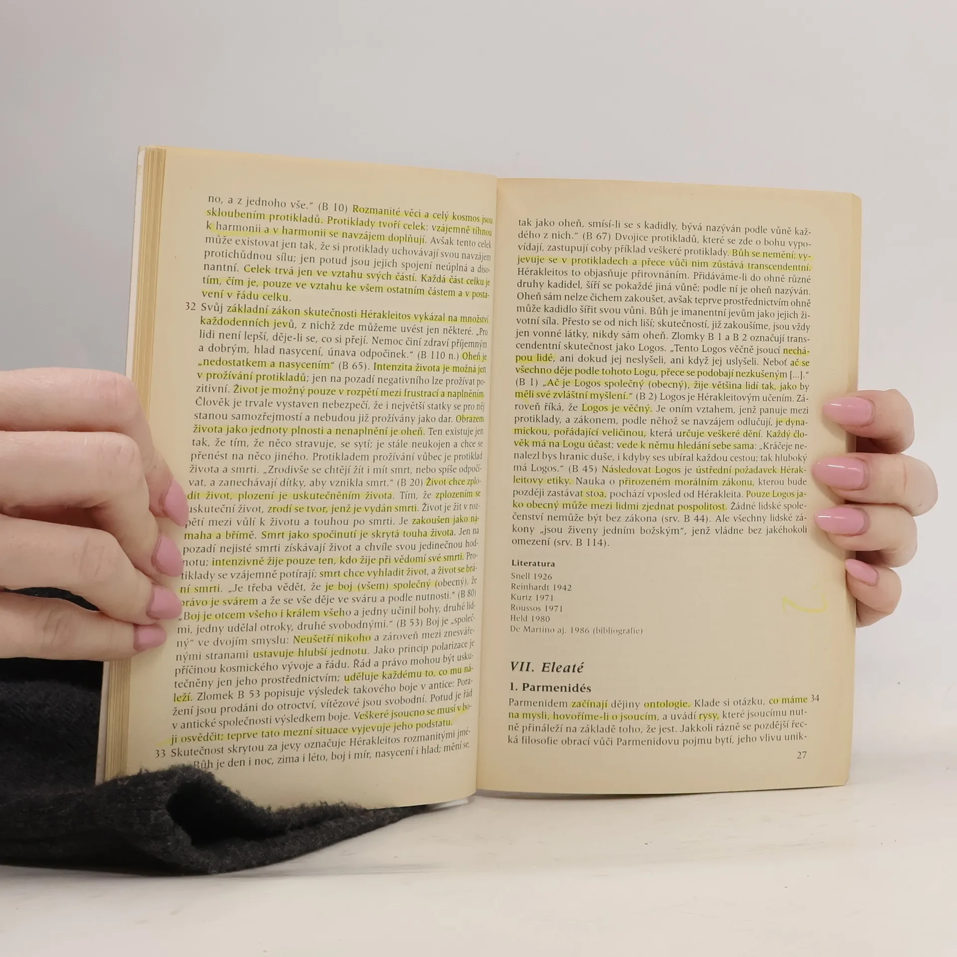 Řečtí myslitelé jako první položili otázky které zaměstnávají filosofii dodnes a řešení o něž se pokoušeli se v průběhu dějin filosofie v různých podobách stále vracejí. Výklad antické filosofie zahrnuje období od předsókratiků (6. stol. př. n. l.) po doznívání novoplatónizmu (6. stol. n. l.): všímá si především zrodu filosofie a prvních kosmologicko-filosofických systémů (mílétská škola Hérakleitos Parmenidés předsókratovské systémy po Parmenidovi ap.) vrcholných výkonů řeckého myšlení v dílech Platónových a Aristotelových a také jejich recepci v období helénizmu. Zvláštní pozornost je však zároveň věnována klíčovým problémům pojmům a tezím které také současné filosofické myšlení považuje za nepostradatelné. Zmíněny jsou kontroverzní otázky i výsledky moderního bádání. Průběžné odkazy k vybrané literatuře slouží k věcnému prohloubení a rozšiřujícím historickým informacím o příslušném tématu. 1. vydání.