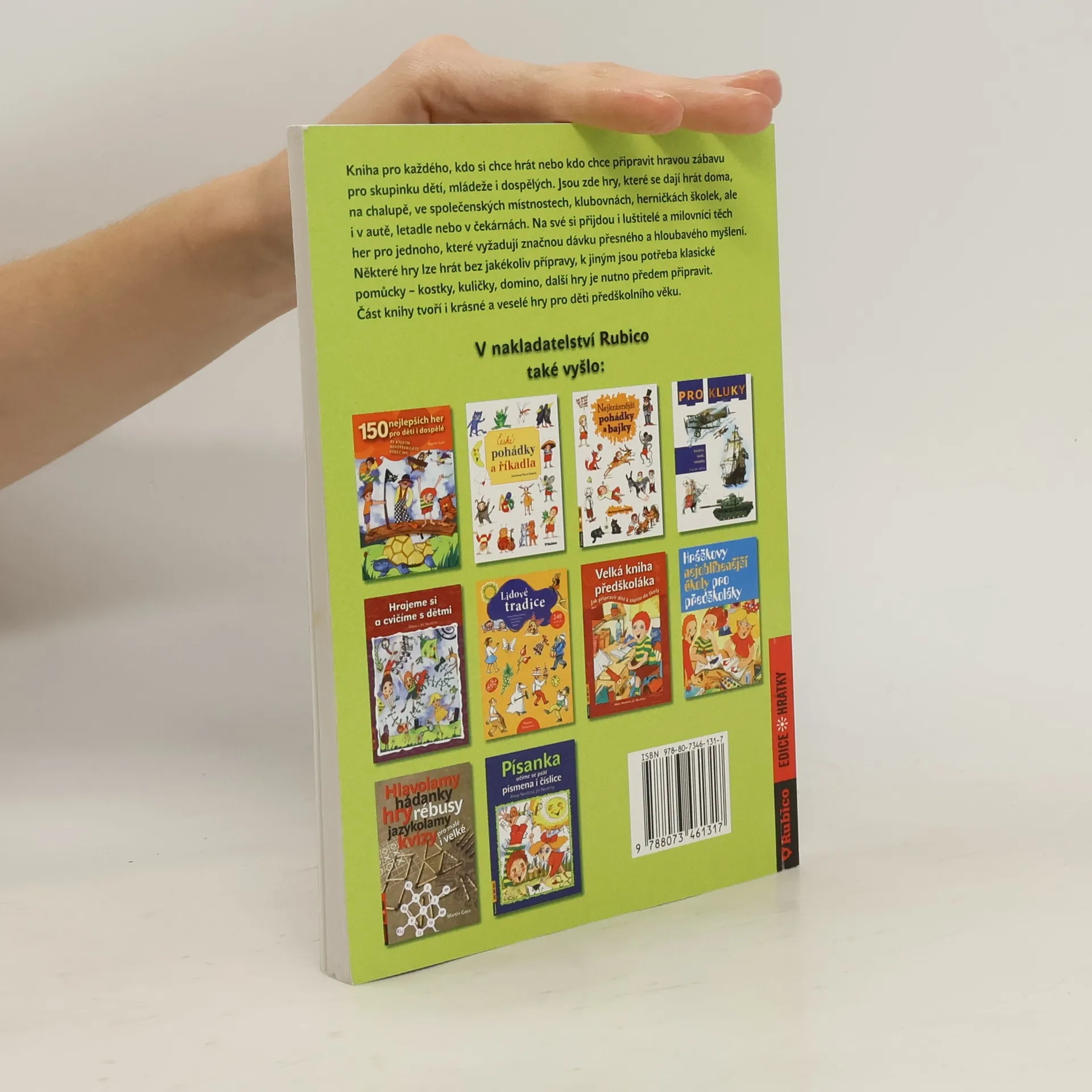 Kniha pro každého, kdo si chce hrát nebo kdo chce připravit hravou zábavu pro skupinku dětí, mládeže i dospělých. Jsou zde hry, které se dají hrát doma, na chalupě, ve společenských místnostech, klubovnách, herničkách školek, ale i v autě, letadle nebo v čekárnách. Na své si přijdou i luštitelé a milovníci těch her pro jednoho, které vyžadují značnou dávku přesného a hloubavého myšlení. Některé hry lze hrát bez jakékoliv přípravy, k jiným jsou potřeba klasické pomůcky - kostky, kuličky, domino, další hry je nutno předem připravit. Část knihy tvoří i krásné a veselé hry pro děti předškolního věku.
