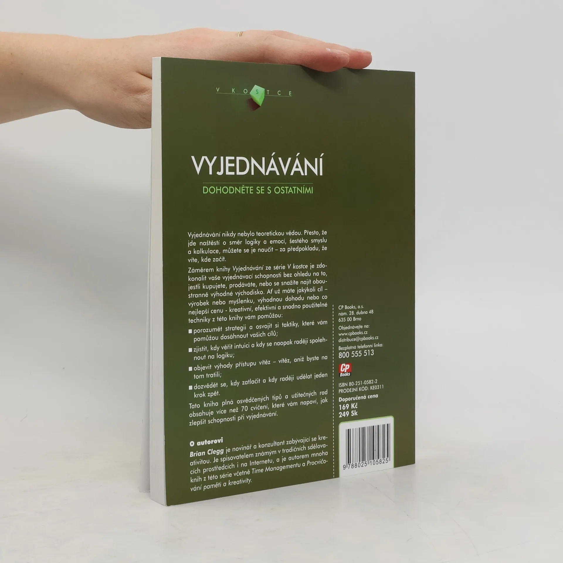 Vyjednávání nikdy nebylo teoretickou vědou. Přesto, že jde naštěstí o směr logiky a emocí, šestého smyslu a kalkulace, můžete se je naučit za předpokladu, že víte, kde začít. Záměrem knihy Vyjednávání ze série V kostce je zdokonalit vaše vyjednávací schopnosti bez ohledu na to, jestli kupujete, prodáváte, nebo se snažíte najít oboustranně výhodné východisko. Ať už máte jakýkoli cíl výrobek nebo myšlenku, výhodnou dohodu nebo co nejlepší cenu kreativní, efektivní a snadno použitelné techniky z této knihy vám pomůžou: porozumět strategii a osvojit si taktiky, které vám pomůžou dosáhnout vašich cílů; zjistit, kdy věřit intuici a kdy se naopak raději spolehnout na logiku; objevit výhody přístupu vítěz vítěz, aniž byste na tom tratili; dozvědět se, kdy zatlačit a kdy raději udělat jeden krok zpět. Tato kniha plná osvědčených tipů a užitečných rad obsahuje více než 70 cvičení, které vám napoví, jak zlepšit schopnosti při vyjednávání. O autorovi: Brian Clegg je novinář a konzultant zabývající se kreativitou. Je spisovatelem známým v tradičních sdělovacích prostředcích i na Internetu, a je autorem mnoha knih z této série včetně Time Managementu a Procvičování paměti a kreativity.