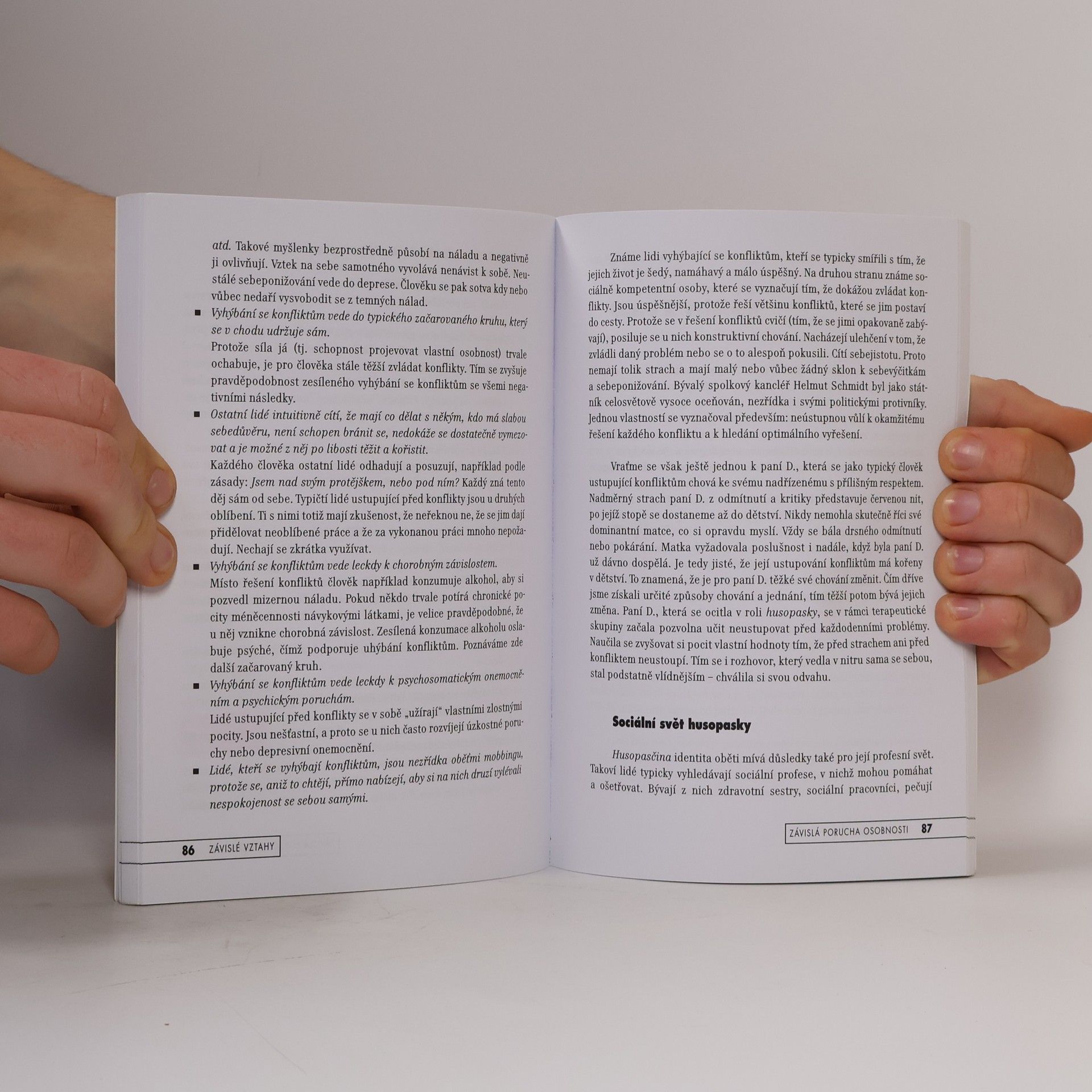Léčba a uzdravení závislé poruchy osobnosti. Závislá porucha osobnosti se vyznačuje zvýšenou potřebou závislosti na druhých lidech, neschopností osamostatnění, nízkým sebehodnocením či nepřiměřenými obavami z opuštění. Tato porucha je podle odborníků mnohem rozšířenější, než se dříve soudilo, a vede často k různým formám závislého chování, psychosomatickým onemocněním, depresím nebo dotyčného dostává často do role týraného a zneužívaného člověka. Autor popisuje na pozadí grimovské pohádky Husopaska to, jak k chorobné závislosti dochází a jaké charakteristické formy na sebe může brát. Citlivě objasňuje, jak může emocionální zneužívání v rodinách vést k masivnímu narušení pocitu vlastní hodnoty, a ukazuje, jak může dojít u dotyčného člověka k osvobození a uzdravení.