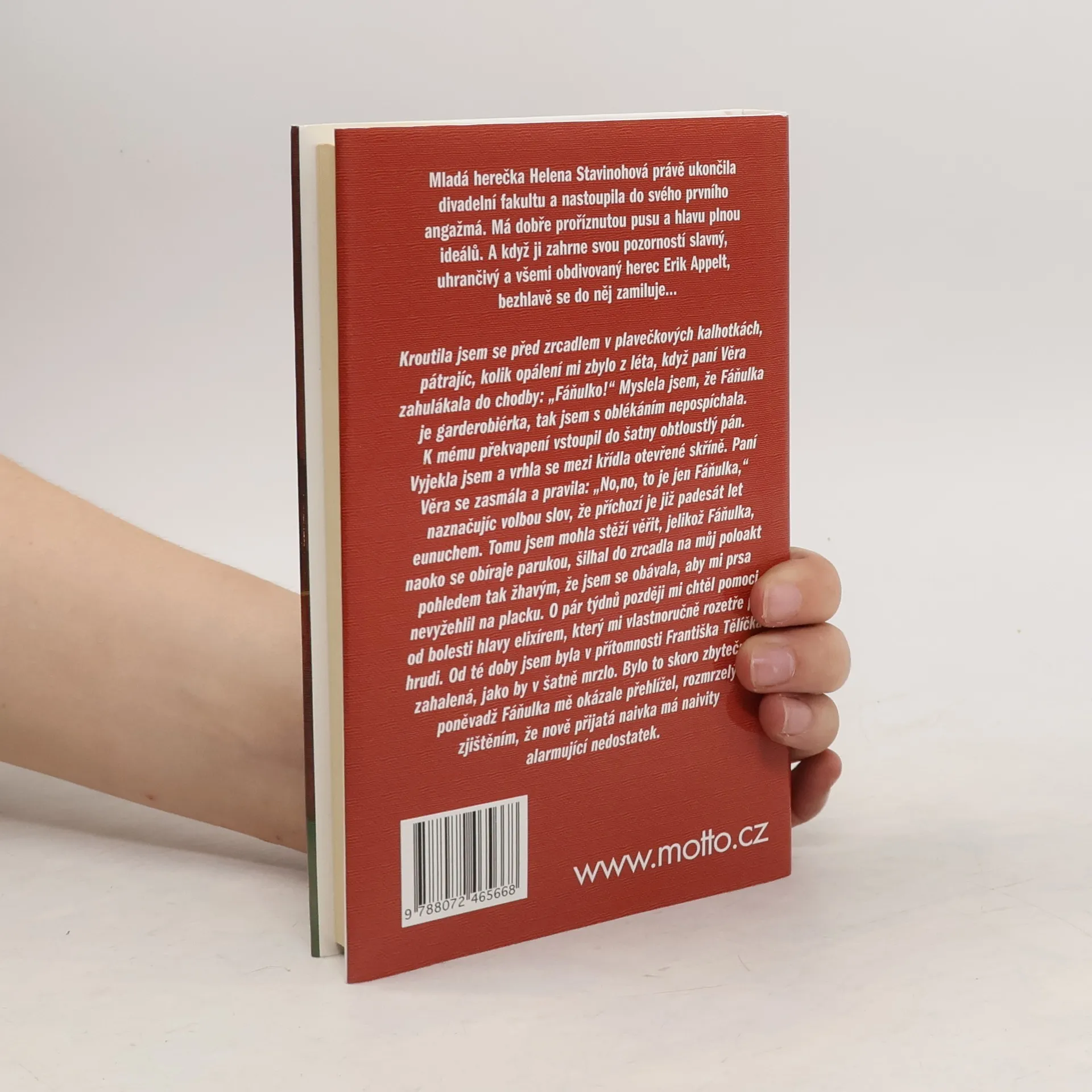 Příběh psaný s humorem a nadhledem vlastním populární herečce a spisovatelce Ivance Deváté. Mladá herečka Helena Stavinohová právě ukončila divadelní fakultu a nastoupila do svého prvního angažmá. Má dobře proříznutou pusu a hlavu plnou ideálů. A když ji zahrne svou pozorností slavný, uhrančivý a všemi obdivovaný herec Erik Appelt, bezhlavě se do něj zamiluje.