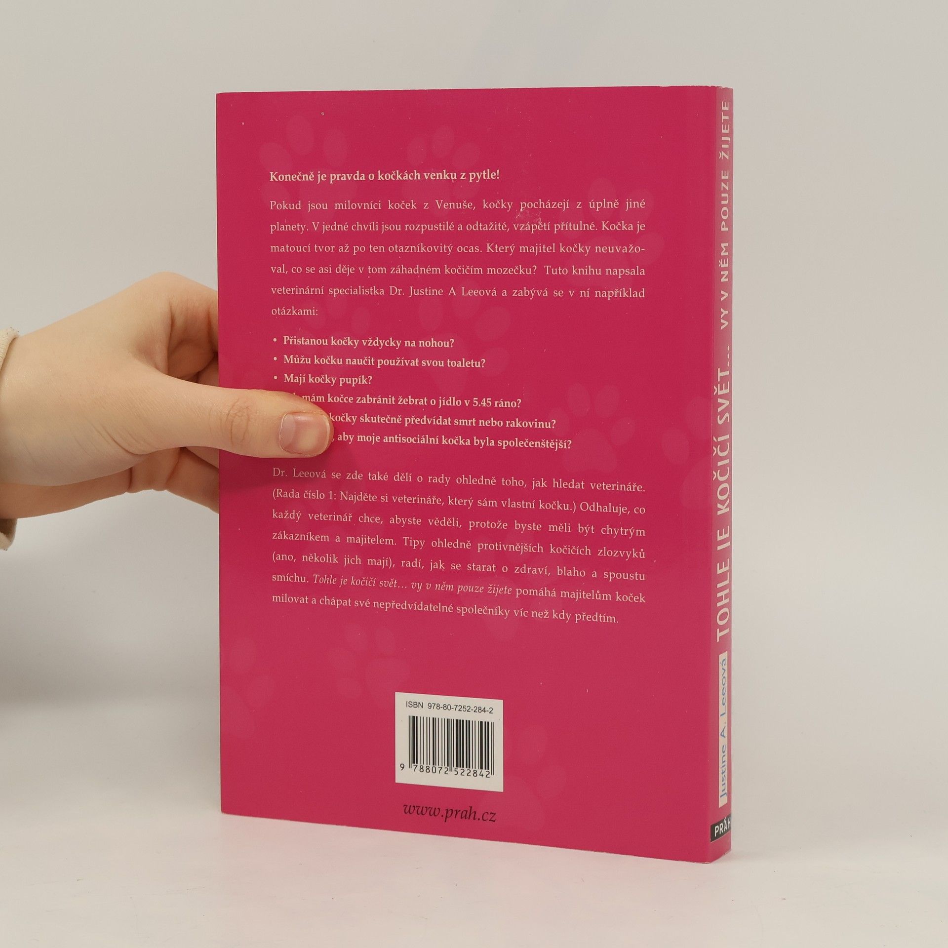 Všechno, co jste kdy chtěli vědět o své chlupaté kočičí šelmičce. Základní kniha pro všechny milovníky i chovatele koček. Žádná otázka nezůstane bez odpovědi. Jak kočky přemýšlí a co svým chováním vyjadřují? Co potřebují a co jim vadí. Jak je léčit? Dokážou předpovědět smrt nebo rakovinu? A mnoho dalšího. Dr. Leeová je uznávanou veterinářkou a specialistkou právě na kočičí plémě.