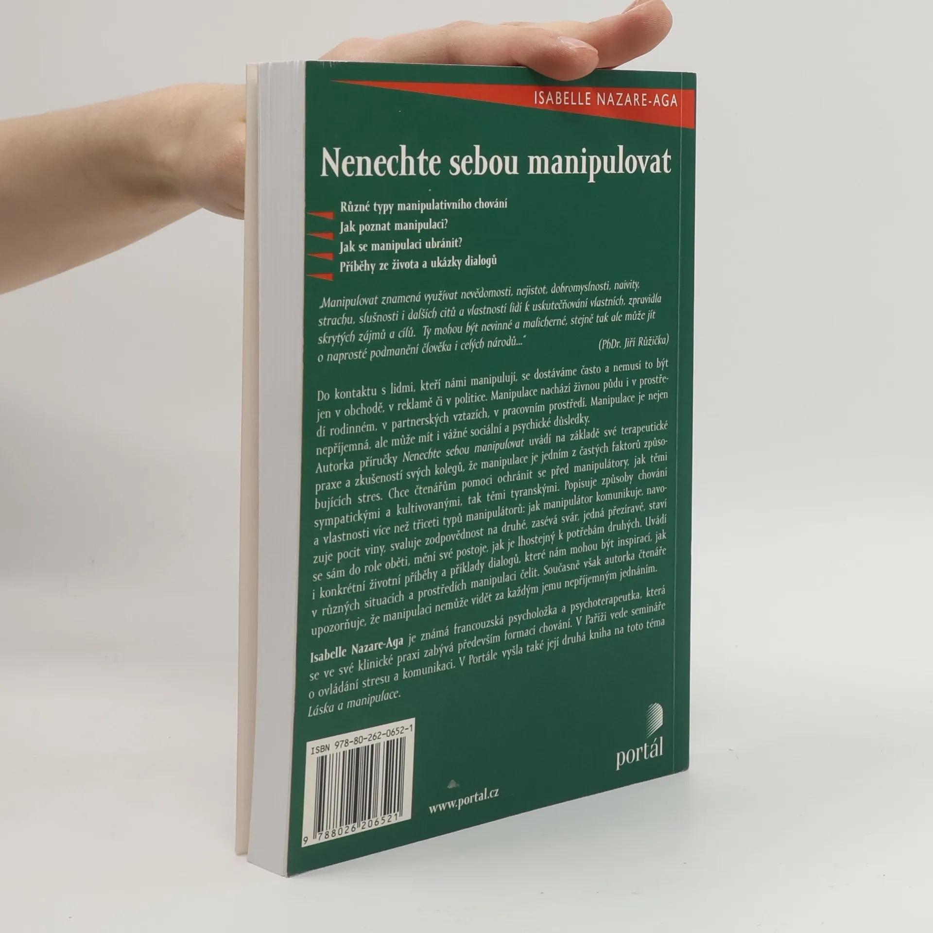 Do kontaktu s lidmi, kteří námi manipulují, se dostáváme často a nemusí to být jen v obchodě, v reklamě či v politice. Autorka příručky uvádí na základě sve terapeutické praxe a zkušeností svých kolegů, že manipulace je jedním z častých faktorů způsobujících stres.