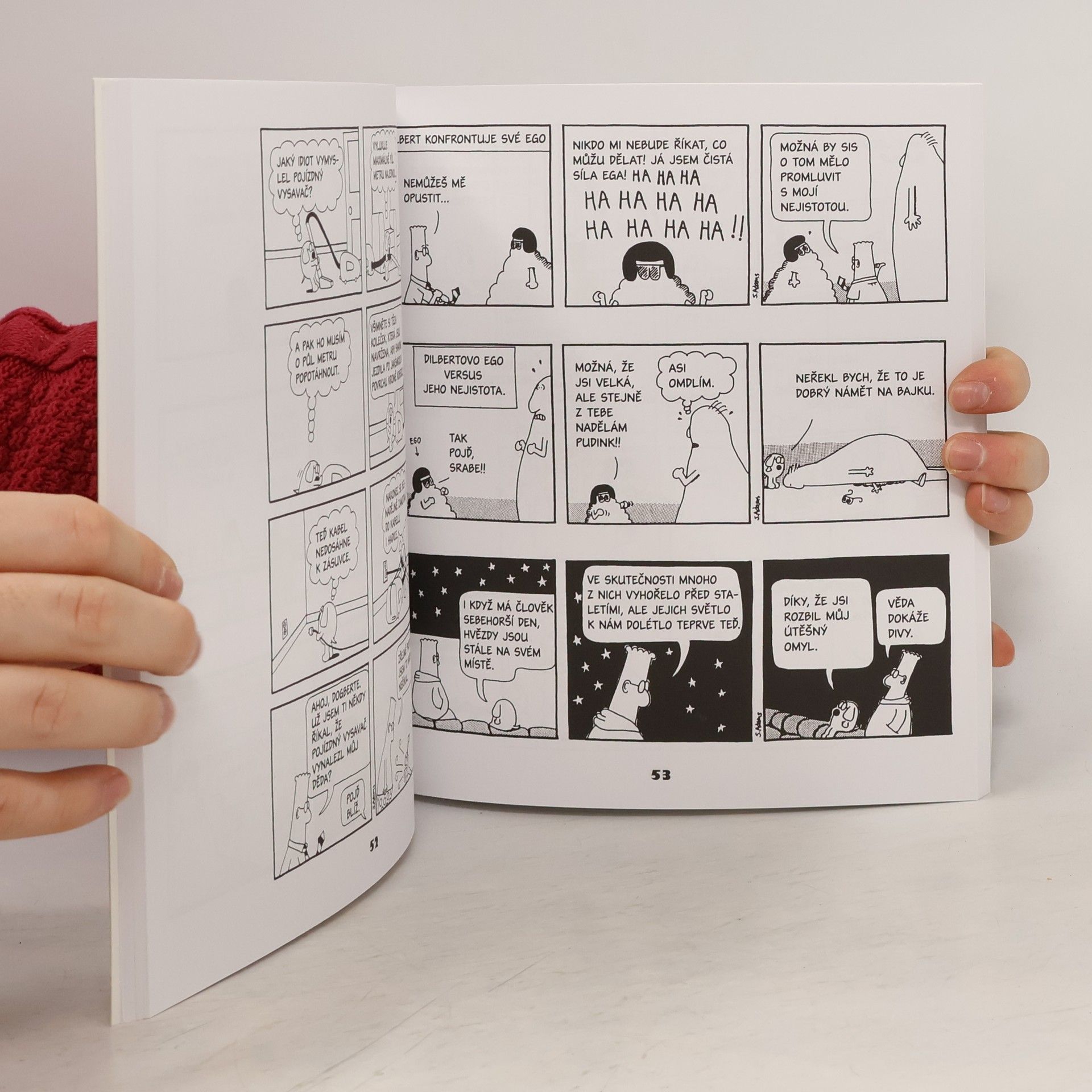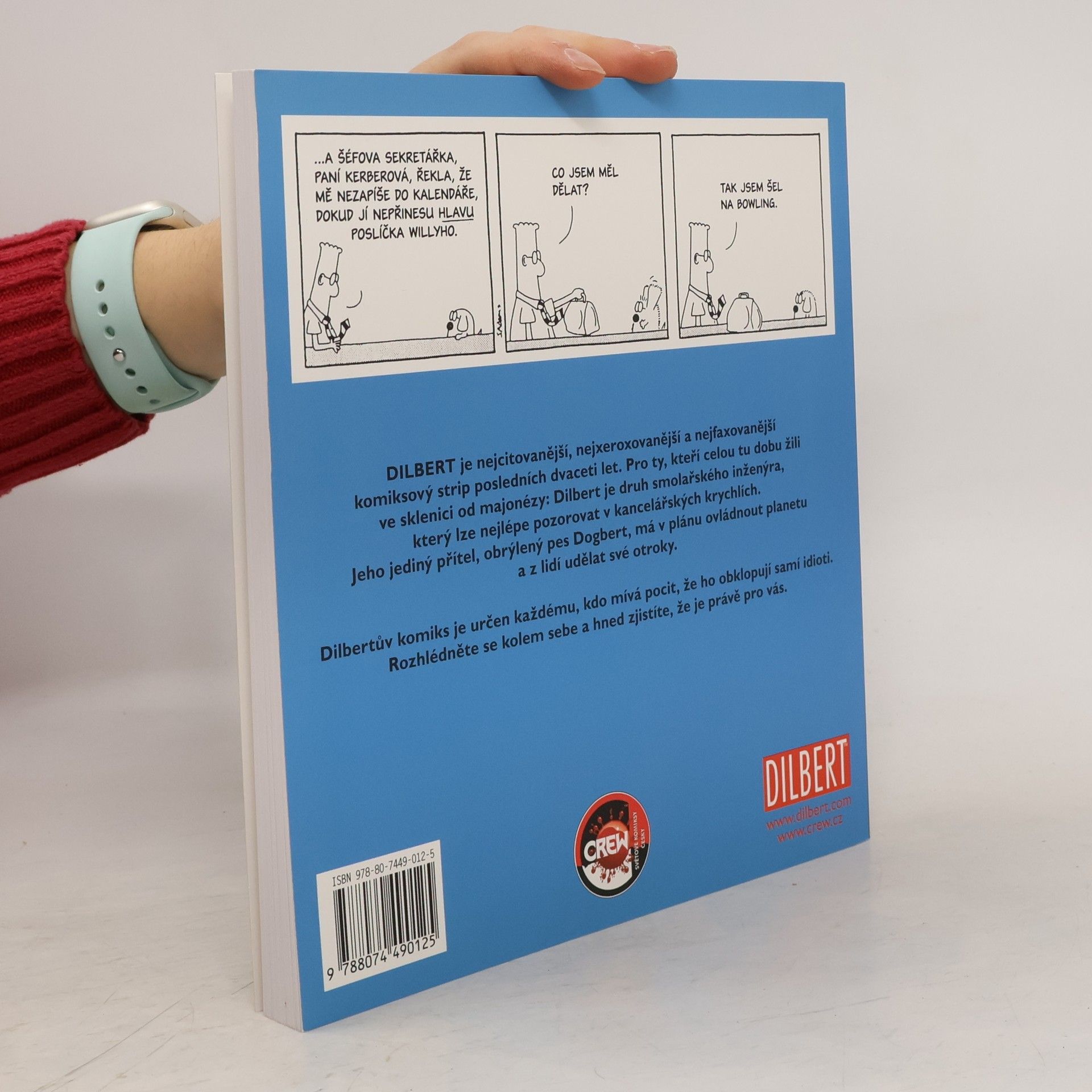 Dilbert je nejcitovanější, nejxeroxovanější a nejfaxovanější komiksový strip posledních dvaceti let. Pro ty, kteří celou tu dobu žili ve sklenici od majonézy: Dilbert je druh smolařského inženýra, který lze nejlépe pozorovat v kancelářských krychlích. Jeho jediný přítel, obrýlený pes Dogbert, má v plánu ovládnout planetu a z lidí udělat své otroky. Dilbertův komiks je určen každému, kdo mívá pocit, že ho obklopují samí idioti. Rozhlédněte se kolem sebe a hned zjistíte, že je právě pro vás.