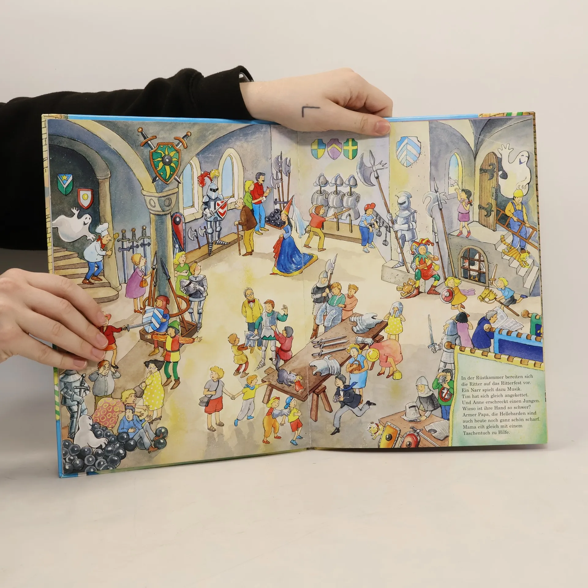 Erlebnis bei den Rittern: In dieser Ritterburg gibt es jede Menge zu entdecken. Jede Doppelseite zeigt einen Raum in der Burg. Auf jeder Seite werden Suchrätsel gestellt. Die Bilder regen zum Erzählen an. Gleichzeitig bieten die Illustrationen eine Möglichkeit, die Ritterzeit lebendig zu erleben. Die Gestaltung ist kindgerecht, der Text und die Arbeitsaufträge sind einfach verfasst. Auch in der Primarschule gut als Ergänzung zum Thema "Ritter und Burgen" verwendbar. ab 8 Jahren, gut, FU.
