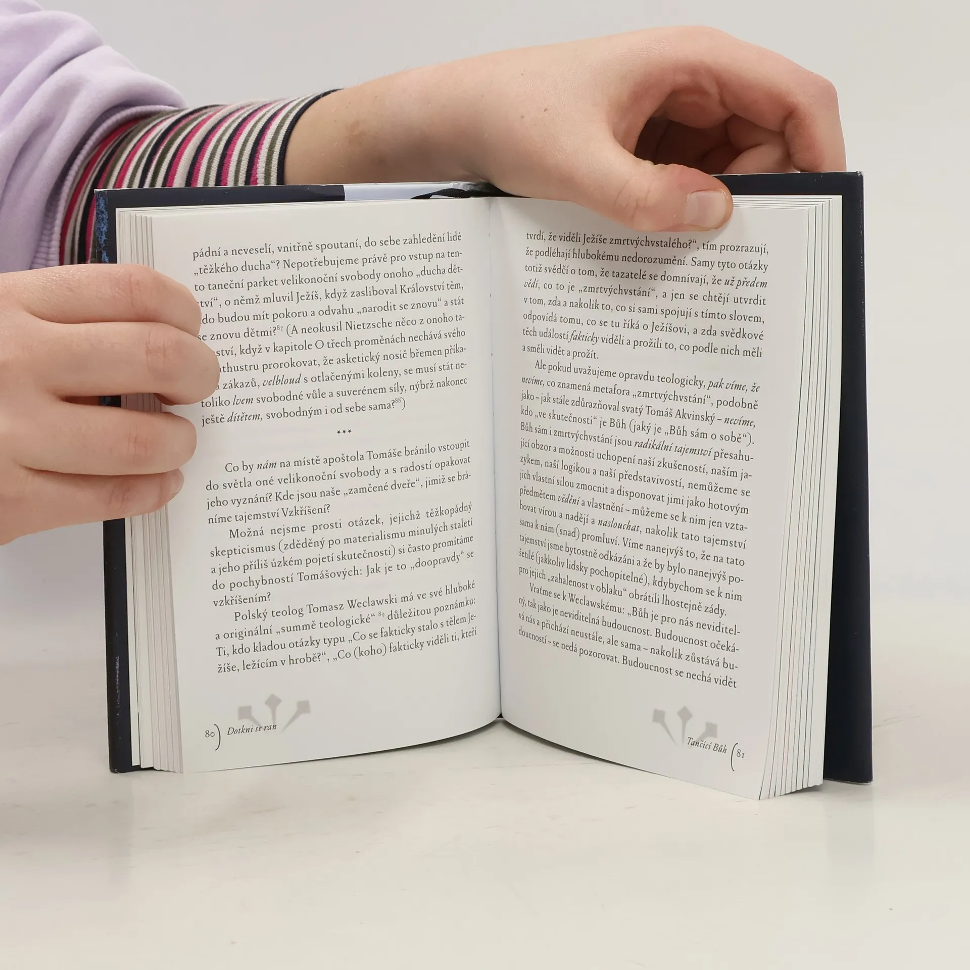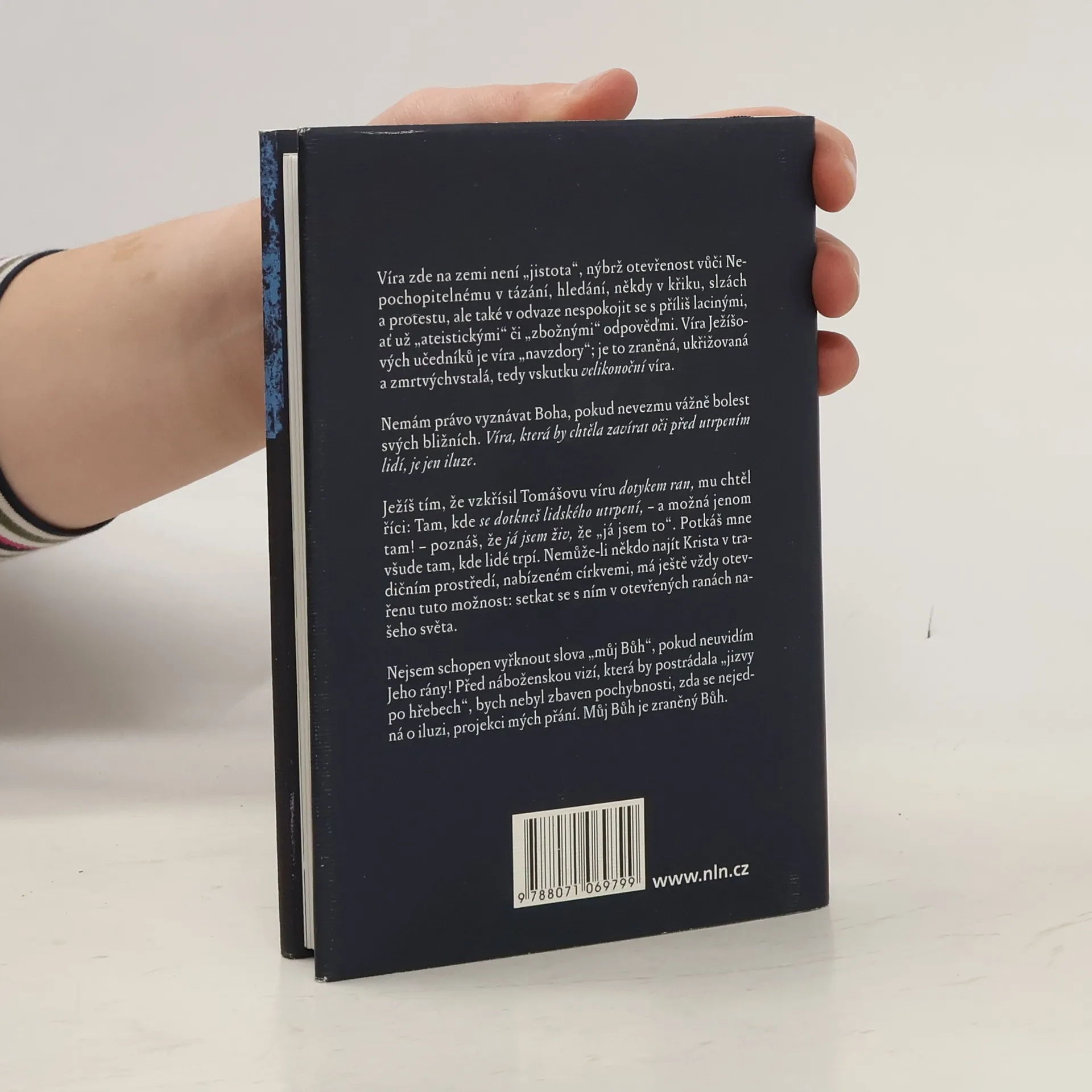 Ve čtrnácti esejích autor vychází z evangelijního příběhu o „nevěřícím Tomášovi". Představy o Bohu, církvi a víře „bez zranění" autor považuje za iluze. Ke křesťanské víře patří odvaha vidět rány našeho světa a dotýkat se jich vírou, která sama je jimi zasažena, zraněna. Tváří v tvář „zraněnému Bohu" člověk může odložit „brnění, masky a šminky", jimiž před druhými a někdy sám před sebou zakrývá svá bolestná místa. Kniha obsahuje jak teologicko-filozofické meditace, dotýkající se mystických hloubek víry, tak překvapivé, ostré i místy humorné komentáře konkrétních událostí a typických znaků naší doby. Zdrojem autorovy inspirace je křesťanská i židovská mystika, Pavlova a Lutherova teologie kříže, současná postmoderní filozofie a teologie i poklady staré lidové velikonoční zbožnosti a umění a v neposlední řadě i autorovy vlastní zkušenosti z dlouholeté terapeutické i pastorační praxe.