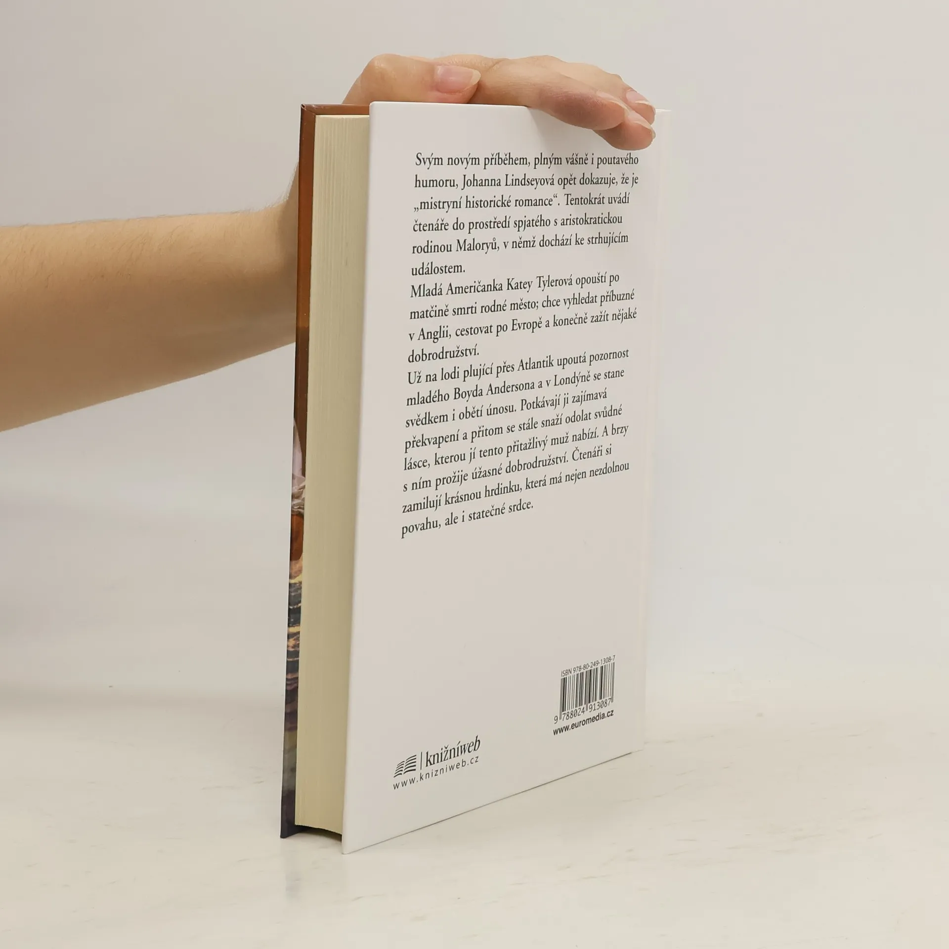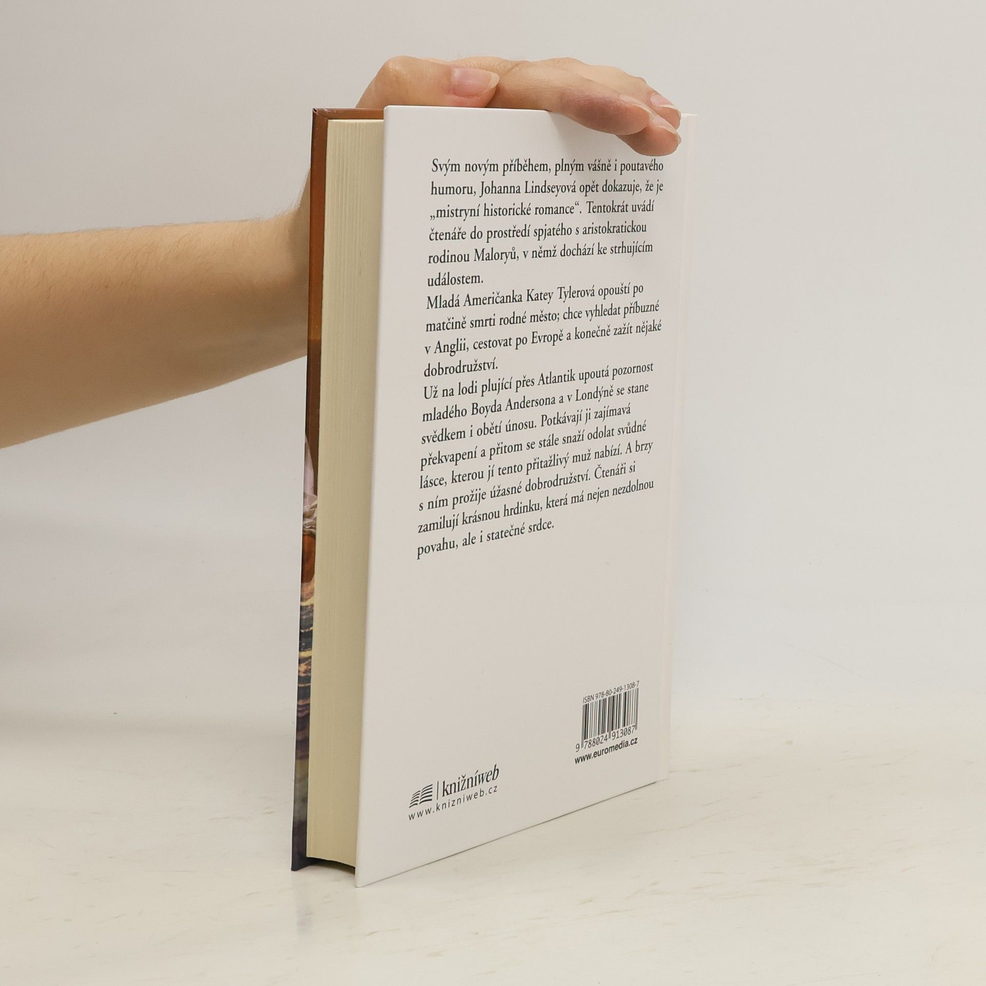 Svým novým příběhem, plným vášně i půvabného humoru, Johanna Lindseyová opět dokazuje, že je „mistryní historické romance“. Tentokrát uvádí čtenáře do prostředí spjatého s aristokratickou rodinou Maloryů, v němž dochází ke strhujícím událostem. Mladá Američanka Katey Tylerová opouští po matčině smrti rodné město; chce vyhledat příbuzné v Anglii, cestovat po Evropě a konečně zažít nějaké dobrodružství. Už na lodi plující přes Atlantik upoutá pozornost mladého Boyda Andersona a v Londýně se stane svědkem i obětí únosu. Potkávají ji zajímavá překvapení a přitom se stále snaží odolat svůdné lásce, kterou jí tento přitažlivý muž nabízí. A brzy s ním prožije úžasné dobrodružství. Čtenáři si zamilují krásnou hrdinku, která má nejen nezdolnou povahu, ale i statečné srdce.