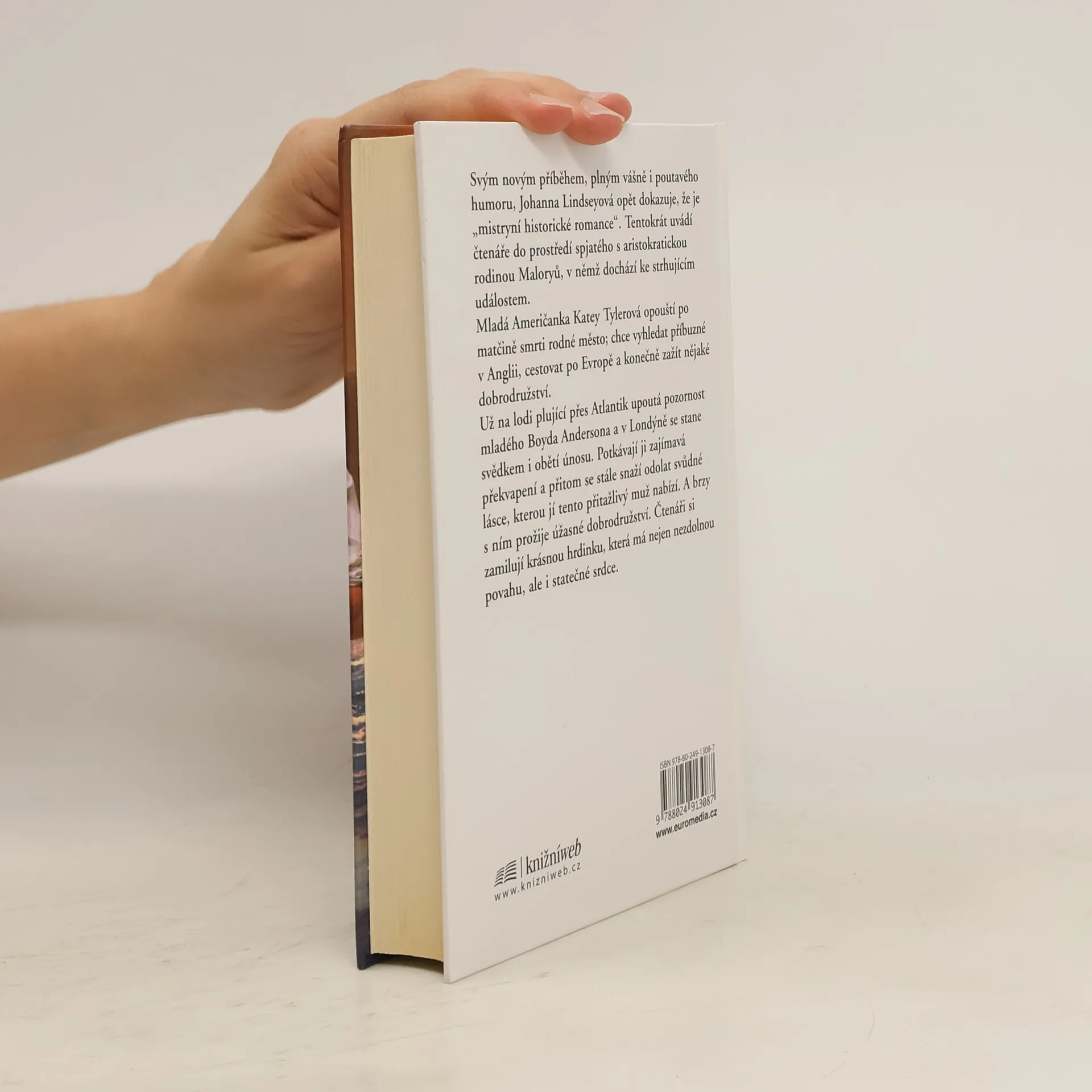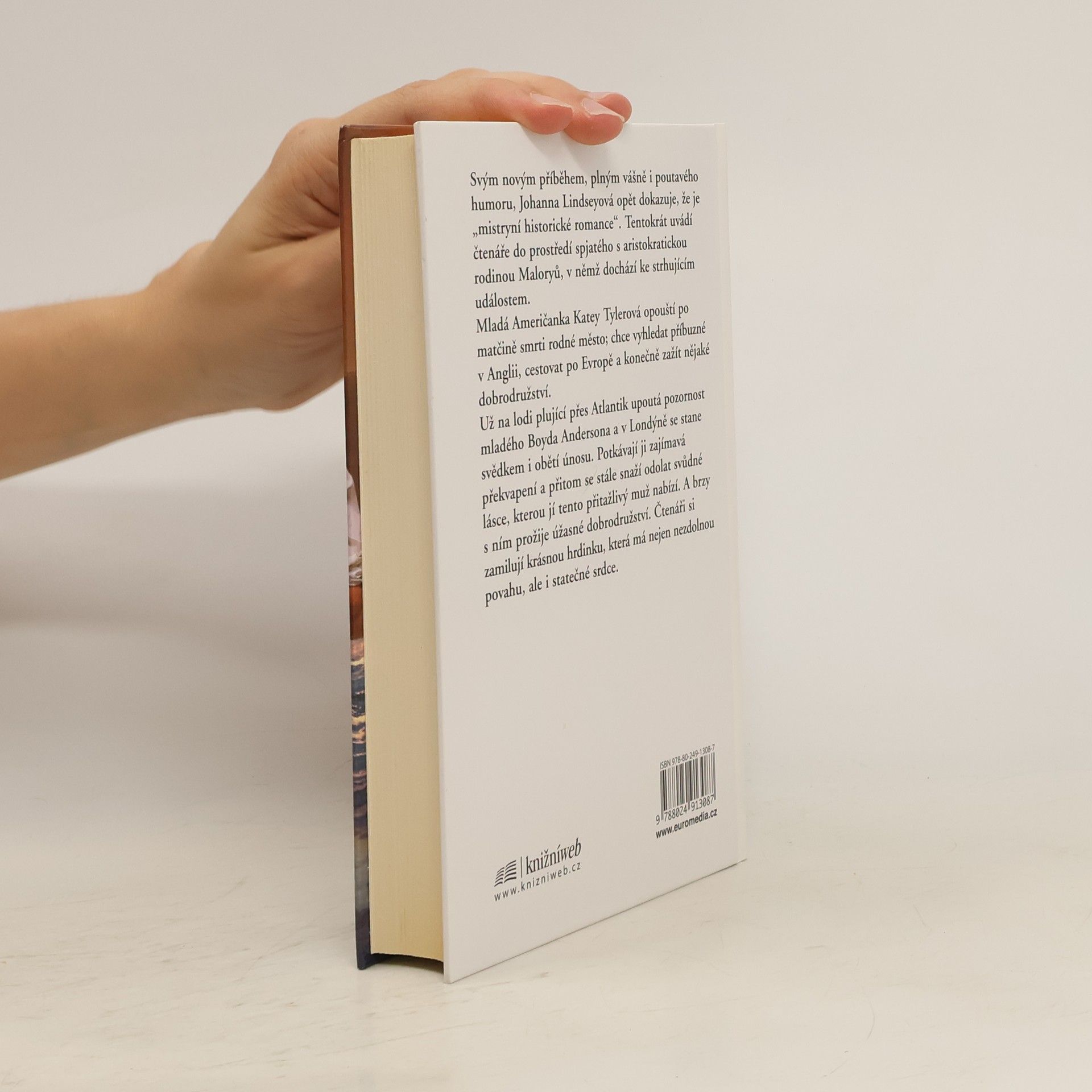 Svým novým příběhem, plným vášně i půvabného humoru, Johanna Lindseyová opět dokazuje, že je „mistryní historické romance“. Tentokrát uvádí čtenáře do prostředí spjatého s aristokratickou rodinou Maloryů, v němž dochází ke strhujícím událostem. Mladá Američanka Katey Tylerová opouští po matčině smrti rodné město; chce vyhledat příbuzné v Anglii, cestovat po Evropě a konečně zažít nějaké dobrodružství. Už na lodi plující přes Atlantik upoutá pozornost mladého Boyda Andersona a v Londýně se stane svědkem i obětí únosu. Potkávají ji zajímavá překvapení a přitom se stále snaží odolat svůdné lásce, kterou jí tento přitažlivý muž nabízí. A brzy s ním prožije úžasné dobrodružství. Čtenáři si zamilují krásnou hrdinku, která má nejen nezdolnou povahu, ale i statečné srdce.