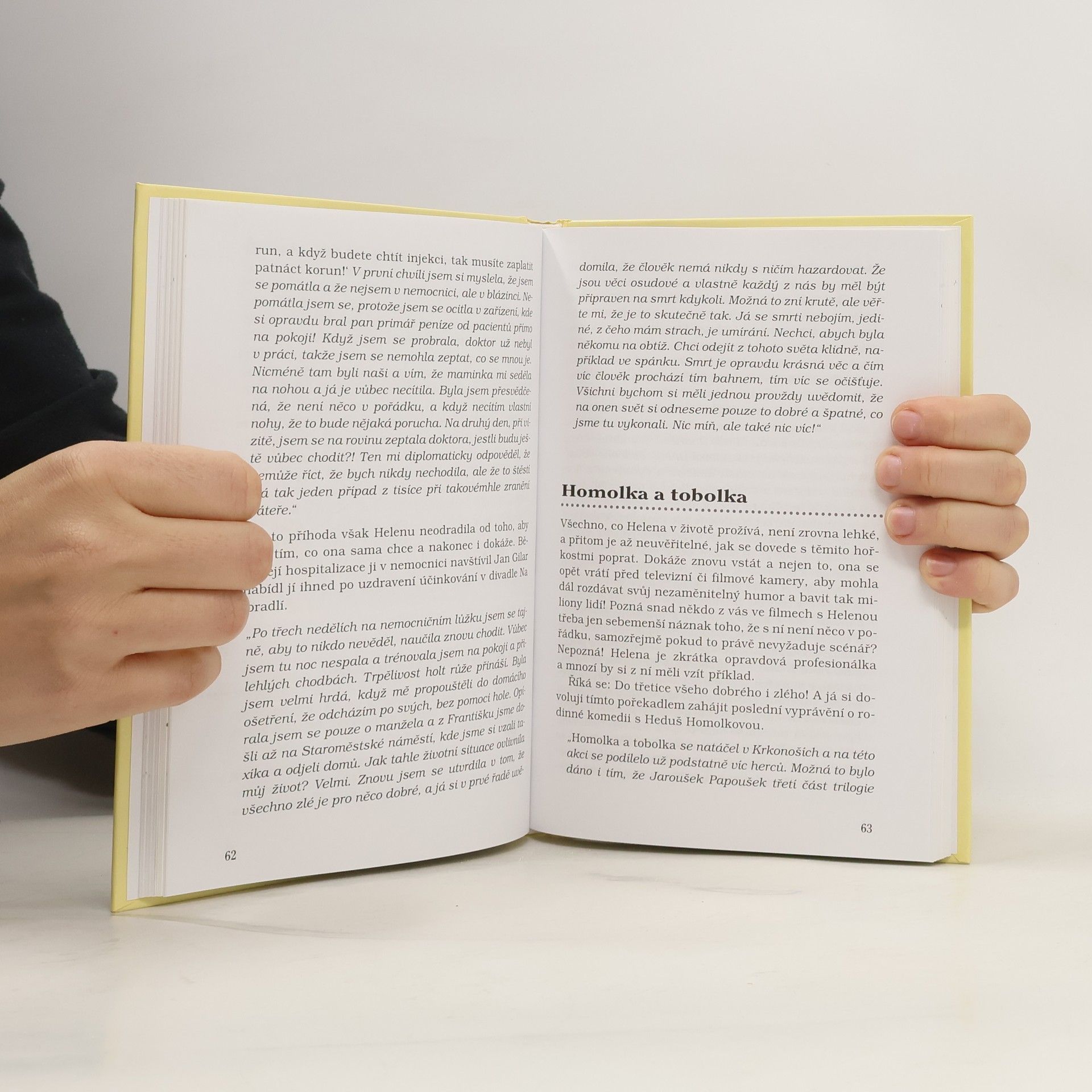 Vzpomínání Heleny Růžičkové je tentokrát vedeno formou rozhovoru. Rozhovor Heleny Růžičkové s Lubošem Nečasem na téma život, rodina, film, divadlo, přátelé... je variantou před časem vydané vzpomínkové knihy ... a tak jsem šla životem. Tím, že se jedná o dialog, působí vzpomínky o něco autentičtěji, třebaže se témata opakují. Ve svých vzpomínkách Helena Růžičková oživuje mimo jiné i léta normalizace, kdy nemohla hrát. Knížka je doplněna neúplným soupisem filmových rolí.