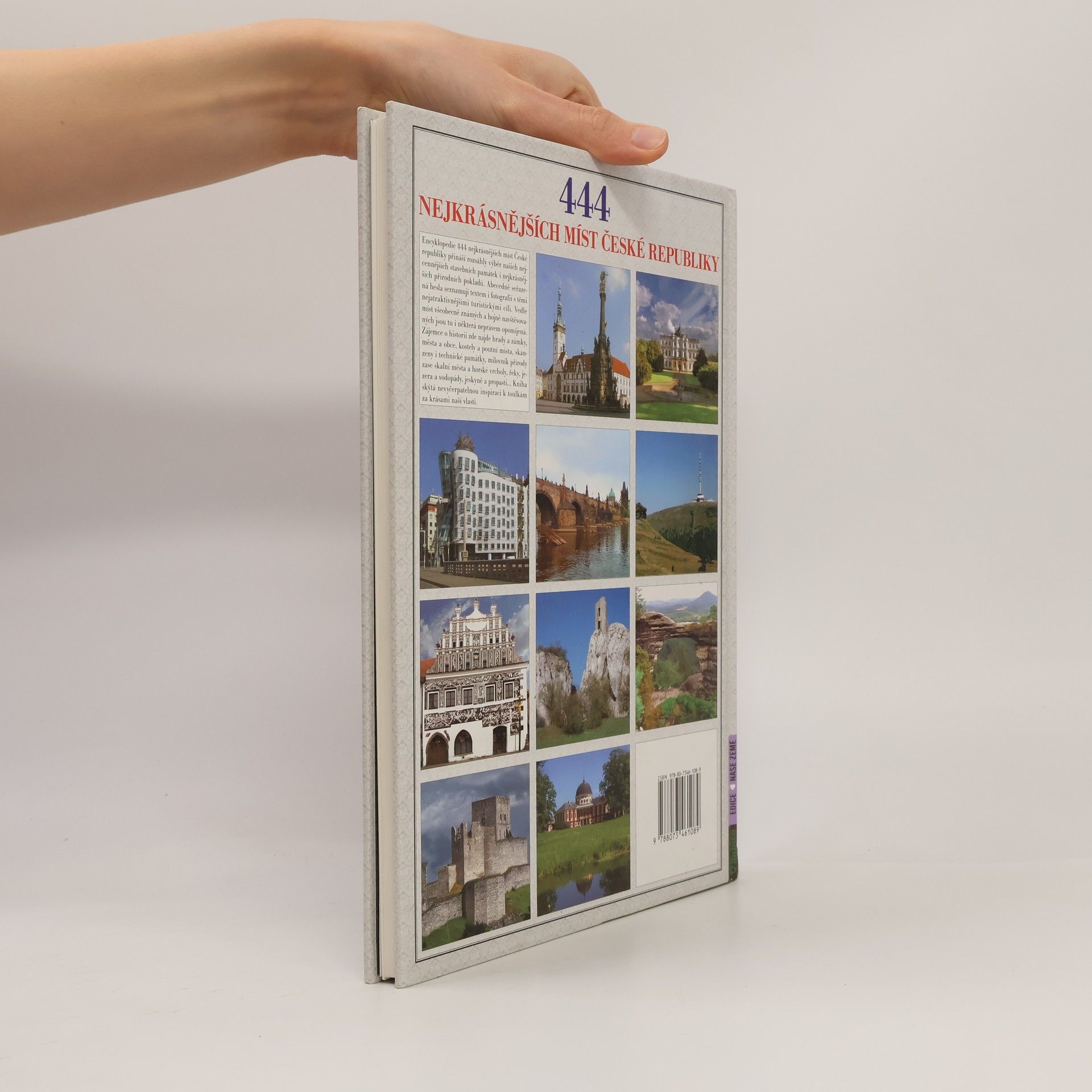 Encyklopedie 444 nejkrásnějších míst České republiky přináší rozsáhlý výběr našich nejcennějších stavebních památek i nejkrásnějších přírodních pokladů. Abecedně seřazená hesla seznamují textem i fotografií s těmi nejatraktivnějšími turistickými cíly. Vedle míst všeobecně známých a hojně navštěvovaných jsou tu i některá neprávem opomíjená. Zájemce o historii zde najde hrady a zámky, města a obce, kostely a poutní místa, skanzeny i technické památky, milovník přírody zase skalní města a horské vrcholy, řeky, jezera a vodopády, jeskyně a propasti… Kniha skýtá nevyčerpatelnou inspiraci k toulkám za krásami naší vlasti.