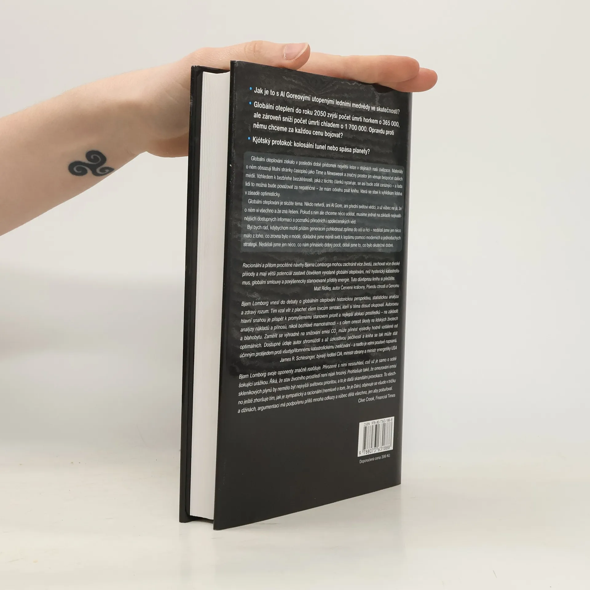 Skeptický ekolog o globálním oteplování. První kniha dánského statistika Bjørna Lomborga nás provádí po problematice globálního oteplování úplně jinak než ostatní práce. Lomborg není "klimatický skeptik" v tom smyslu, že by odmítal převládající názory na oteplování v důsledku lidské aktivity. Nezpochybňuje ani to, že globální oteplování bude mít ve svém souhrnu nakonec pro lidi, životní prostředí i ekonomiku negativní následky. Velkou skepsi však projevuje vůči všeobecně navrhovaným způsobům řešení v čele s Kjótským protokolem. Ukazuje, že objektivně doložitelným škodám oteplování lze snadno zabránit cílenými, rychlými a především relativně levnými zásahy. Tyto praktické kroky by přitom již za krátkou dobu pomohly nepoměrně více lidem a přinesly by světu daleko větší prospěch než nesmyslně drahé omezování emisí skleníkových plynů, které navíc stejně ničemu nepomůže. (Dokořán)