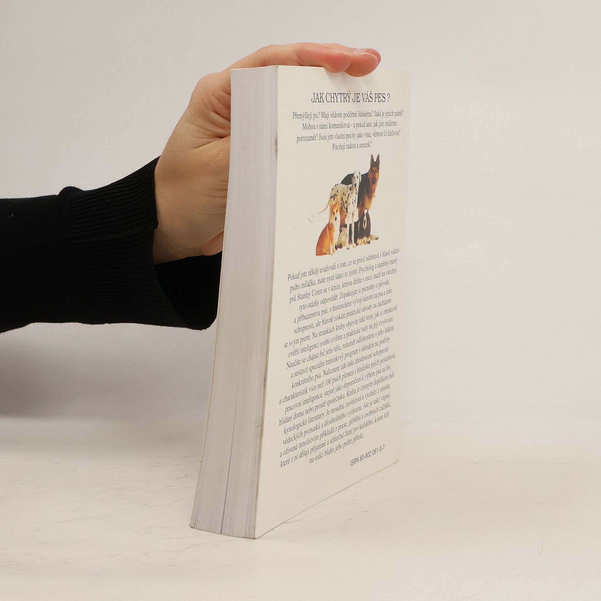 Stočtyřicet století se člověk a pes svorně dělí o potravu, obydlí, radosti i starosti. Co však o svých nejlepších přátelích vlastně víme? Monografie se snaží odpovědět na nejčastější otázky, které jste si jistě někdy položili i sami. Přemýšlejí psi? Pokud psi přemýšlejí, mají vědomí, které je srovnatelné s lidským vnímáním? Mají psi vzpomínky na věci minulé a dovedou si představit i věci budoucí? Rozumějí psi lidské řeči? Mají psi systém či prostředky ke komunikaci s námi nebo s jinými psi? Liší se jednotlivá plemena psů v tom, co bychom mohli nazvat inteligencí? Znají psi pocity, jako je například vina, věrnost, ochranářství, emoce jako je kupříkladu radost nebo žal? Přestože na mnohé z těchto otázek si vnímavý majitel na základě vlastní zkušenosti se psem odpoví sám, tato kniha nabízí podrobnější, odborně naučné odpovědi, doložené řadou konkrétních příkladů a zajímavých příběhů.