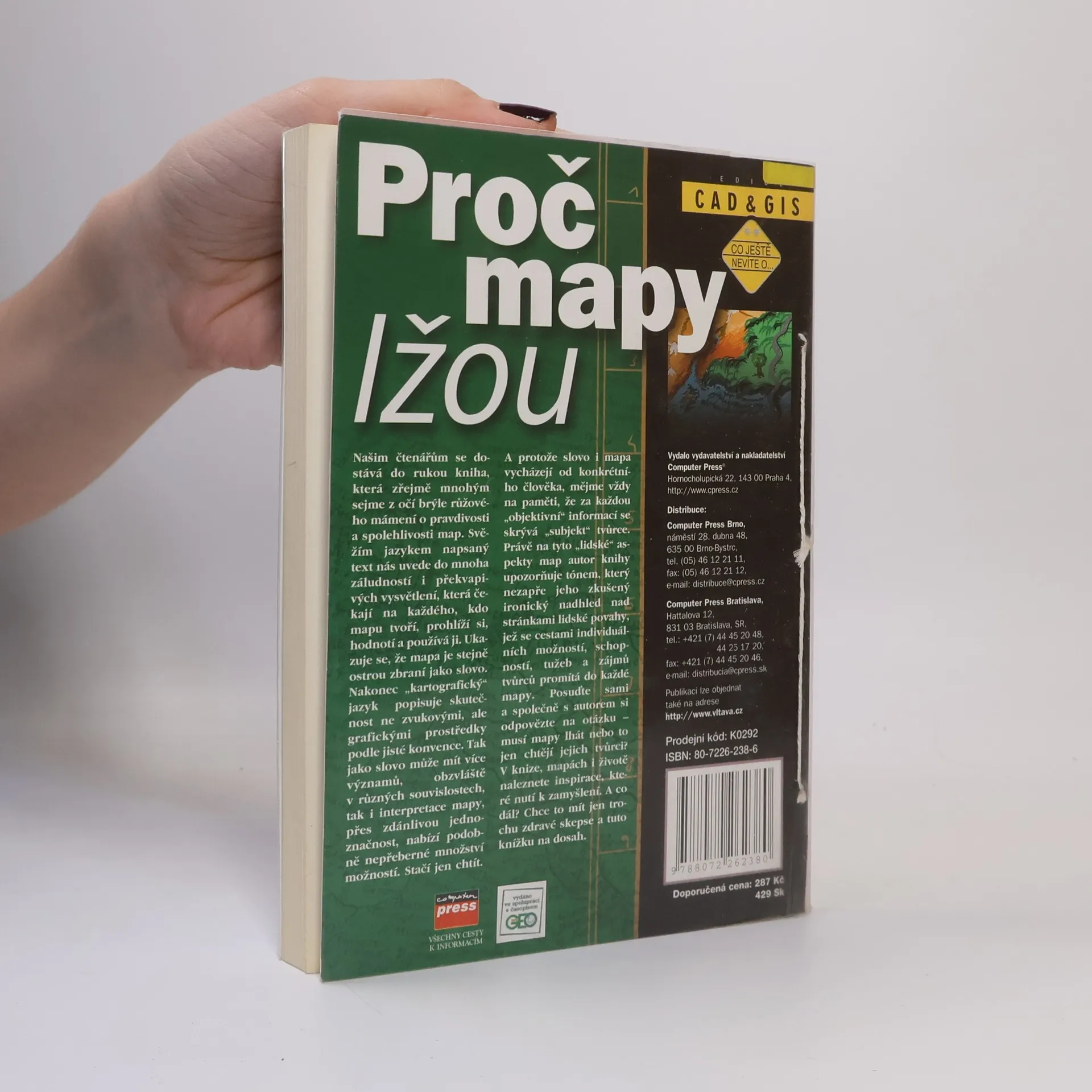 Našim čtenářům se dostává do rukou kniha, která zřejmě mnohým sejme z očí brýle růžového mámení o pravdivosti a spolehlivosti map. Svěžím jazykem napsaný text nás uvede do mnoha záludností i překvapivých vysvětlení, která čekají na každého, kdo mapu tvoří, prohlíží si, hodnotí a používá ji. Ukazuje se, že mapa je stejně ostrou zbraní jako slovo. Nakonec „kartografický“ jazyk popisuje skutečnost ne zvukovými, ale grafickými prostředky podle jisté konvence. Tak jako slovo může mít více významů, obzvláště v různých souvislostech, tak i interpretace mapy, přes zdánlivou jednoznačnost, nabízí podobně nepřeberné množství možností. Stačí jen chtít. A protože slovo i mapa vycházejí od konkrétního člověka, mějme vždy na paměti, že za každou „objektivní“ informací se skrývá „subjekt“ tvůrce. Právě na tyto „lidské“ aspekty map autor knihy upozorňuje tónem, který nezapře jeho zkušený ironický nadhled nad stránkami lidské povahy, jež se cestami individuálních možností, schopností, tužeb a zájmů tvůrců promítá do každé mapy. Posuďte sami a společně s autorem si odpovězte na otázku – musí mapy lhát nebo to jen chtějí jejich tvůrci? V knize, mapách i životě naleznete inspirace, které nutí k zamyšlení. A co dál? Chce to mít jen trochu zdravé