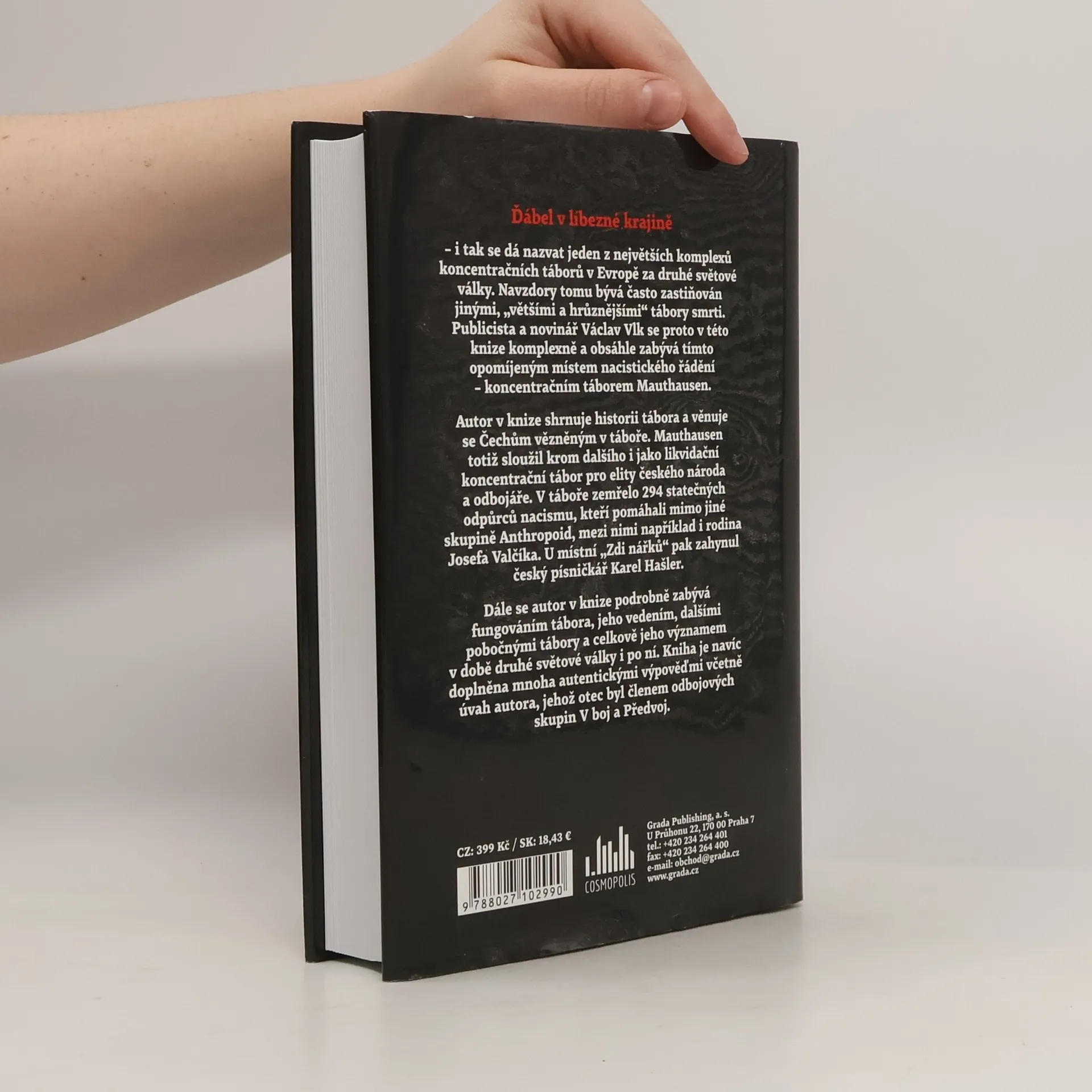 Ďábel v líbezné krajině – i tak se dá nazvat jeden z největších komplexů koncentračních táborů v Evropě za druhé světové války. Navzdory tomu bývá často zastiňován jinými, „většími a hrůznějšími“ tábory smrti. Publicista a novinář Václav Vlk se proto v této knize komplexně a obsáhle zabývá tímto opomíjeným místem nacistického řádění – koncentračním táborem Mauthausen. Autor v knize shrnuje historii tábora a věnuje se Čechům vězněným v táboře. Mauthausen totiž sloužil krom dalšího i jako likvidační koncentrační tábor pro elity českého národa a odbojáře. V táboře zemřelo 294 statečných odpůrců nacismu, kteří pomáhali mimo jiné skupině Anthropoid, mezi nimi například i rodina Josefa Valčíka. U místní „Zdi nářků“ pak zahynul český písničkář Karel Hašler. Dále se autor v knize podrobně zabývá fungováním tábora, jeho vedením, dalšími pobočnými tábory a celkově jeho významem v době druhé světové války i po ní. Kniha je navíc doplněna mnoha autentickými výpověďmi včetně úvah autora, jehož otec byl členem odbojových skupin V boj a Předvoj. Unikátní publikaci doprovází velké množství fotografií a dobových materiálů.