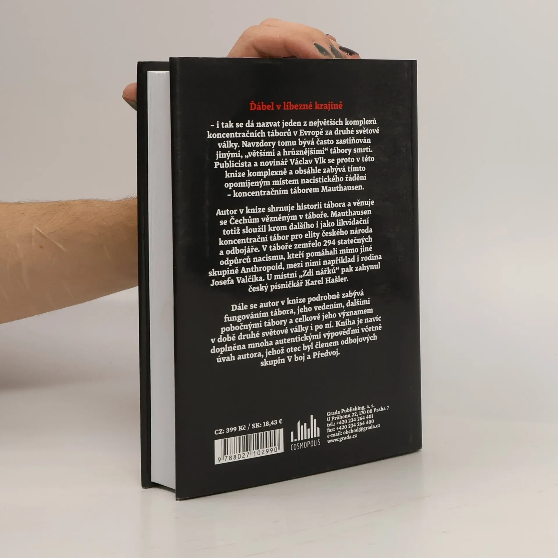 Ďábel v líbezné krajině – i tak se dá nazvat jeden z největších komplexů koncentračních táborů v Evropě za druhé světové války. Navzdory tomu bývá často zastiňován jinými, „většími a hrůznějšími“ tábory smrti. Publicista a novinář Václav Vlk se proto v této knize komplexně a obsáhle zabývá tímto opomíjeným místem nacistického řádění – koncentračním táborem Mauthausen. Autor v knize shrnuje historii tábora a věnuje se Čechům vězněným v táboře. Mauthausen totiž sloužil krom dalšího i jako likvidační koncentrační tábor pro elity českého národa a odbojáře. V táboře zemřelo 294 statečných odpůrců nacismu, kteří pomáhali mimo jiné skupině Anthropoid, mezi nimi například i rodina Josefa Valčíka. U místní „Zdi nářků“ pak zahynul český písničkář Karel Hašler. Dále se autor v knize podrobně zabývá fungováním tábora, jeho vedením, dalšími pobočnými tábory a celkově jeho významem v době druhé světové války i po ní. Kniha je navíc doplněna mnoha autentickými výpověďmi včetně úvah autora, jehož otec byl členem odbojových skupin V boj a Předvoj. Unikátní publikaci doprovází velké množství fotografií a dobových materiálů.