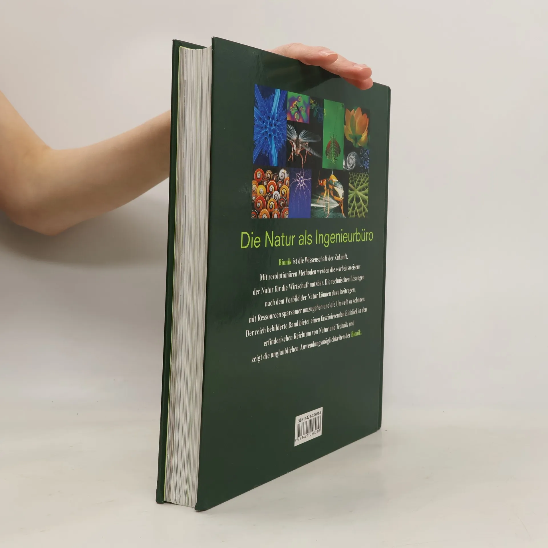 Die Natur hat für viele komplizierte Fragestellungen aus Industrie und Technik ebenso überraschende wie geniale Lösungen parat. Die in Jahrmillionen optimierten „Erfindungen der Natur“ bieten einen unerschöpflichen Vorrat an Konstruktionsprinzipien und Verfahren von höchster Wirksamkeit und Leistungsfähigkeit, die als Vorbild für ähnlich gelagerte technische Probleme dienen können. Zwar hat der Mensch sich schon immer am Vorbild der Natur orientiert, aber Bionik ist die systematische Beobachtung und Untersuchung der Problemlösungen der Natur im Hinblick auf ihre Übertragbarkeit auf menschliche Technik und Materialien. Die Anwendungsmöglichkeiten erstrecken sich auf alle Industriezweige, auf Medizintechnik, Design, Architektur, Informationstechnologie, Raumfahrttechnik, Schiffs-, Bahn- und Automobilbau, um nur einige Bereiche zu nennen. Die Bionik kann überdies dabei helfen, in einer Zeit, in der die moderne Technik vielfach an ökologische Grenzen stößt, umweltverträglichere Wege zu finden. Der Bildband bietet nicht nur eine Fülle von Anregungen und Ideen, er zeigt zugleich die faszinierende Schönheit und Harmonie natürlicher Baumuster, die sich dem Auge oft erst durch die meisterhaften Photographien erschließen.