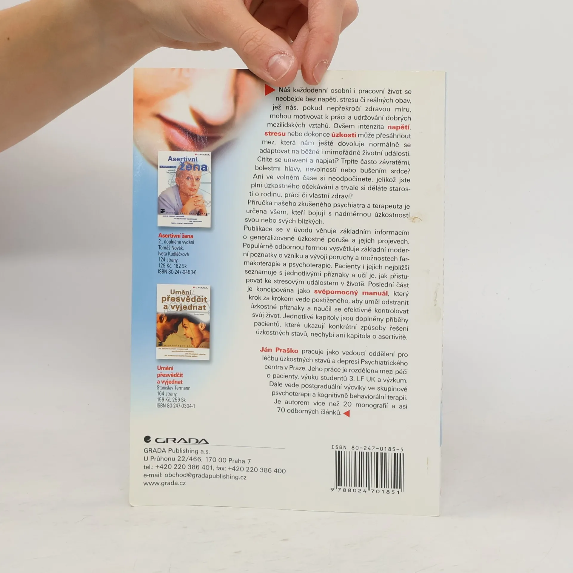 Publikace je určena všem, kteří často trpí pocitem nervozity a napětí, mají starosti, obavy, nepříjemné tělesné pocity, nedokážou odpočívat atp. Vysvětluje základní poznatky a příznaky úzkosti a jejich vztah ke stresovým událostem běžného života. Autor radí, jak řešit problémy i jak jim předcházet. Samostatná kapitola je věnována asertivitě.