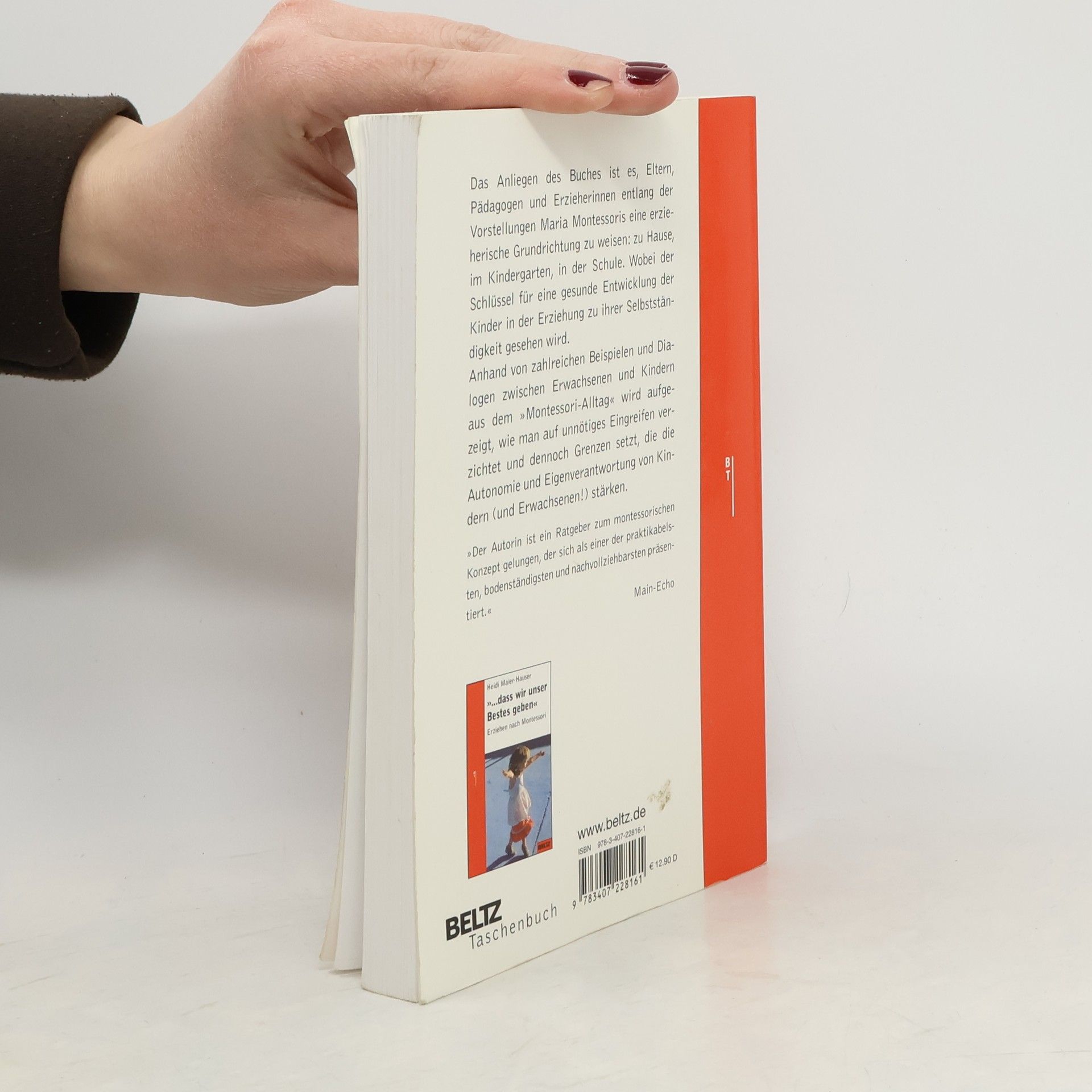Einem Kind alle Hürden aus dem Weg zu räumen nimmt ihm das eigenständige Lernen aus der Hand, so die Montessori-Pädagogik. Also muss dem Kind Raum gelassen werden für das Selbstlernen und um ein Gefühl für das eigene Können zu entwickeln.Maier-Hauser richtet sich an alle Eltern, die innehalten und prüfen möchten, ob sie in ihrer Aufgabe, ihre Kinder zu begleiten, auf dem richtigen Weg sind. Die meisten Anregungen sind für Kinder bis zum Alter von acht Jahren gedacht, sie lassen sich jedoch weit über dieses Alter hinaus anwenden, vielfach auch im Umgang mit Erwachsenen. Anhand von zahlreichen Beispielen und Dialogen zwischen Eltern und Kindern aus dem »Montessori-Alltag« zeigt die Autorin, wie man auf unnötiges Eingreifen verzichtet und dennoch Grenzen setzt, die die Autonomie und Eigenverantwortung des Kindes stärken.Das einzige »Erziehungsbuch nach Montessori« neben den zahlreichen Originalwerken der italienischen Reformpädagogin.
