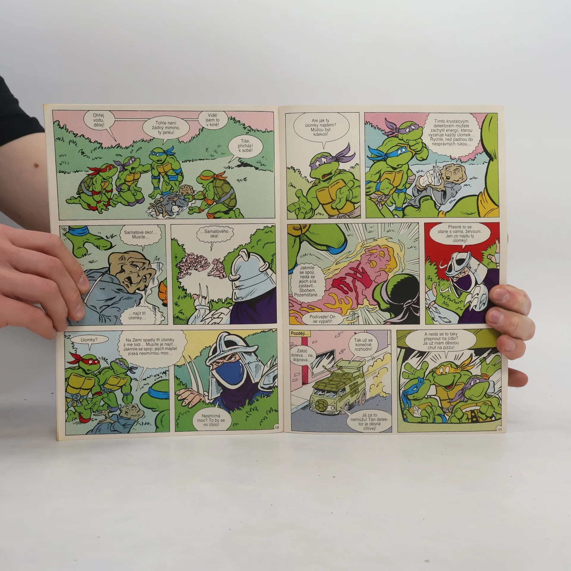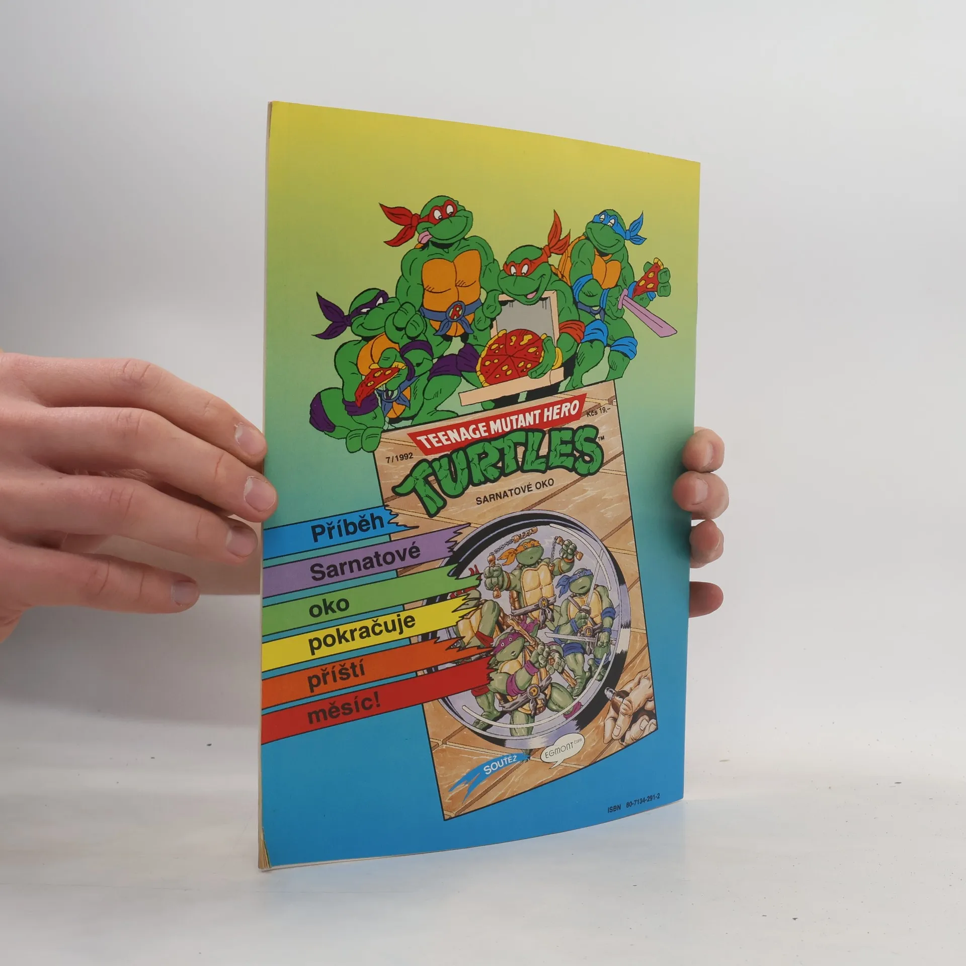 Příběh: Sarnatové oko I Sešit ze serie příběhu neunávných želvých bojovníků a milovníků pizzy - Donatellem, Michelangelem a Raffaelem. A nejen s nimi se setkáte, ale také s April O'Neilovou, atraktivní reportérkou, s Třískou, učitelem starého japonského bojového umění nindžutsu, a samozřejmě s Trhačem, jejich úhlavním nepřítelem, který chce ovládnout celý svět...