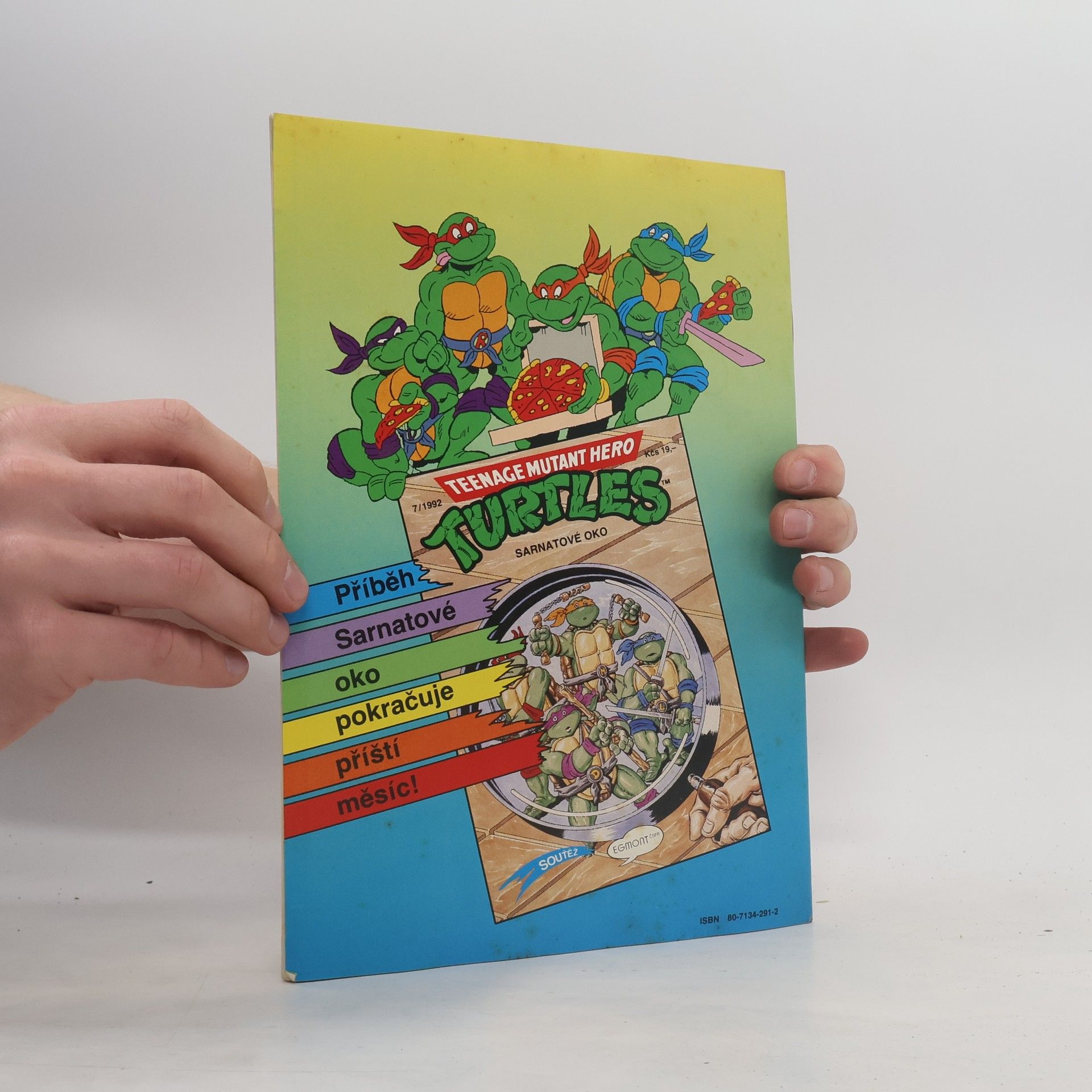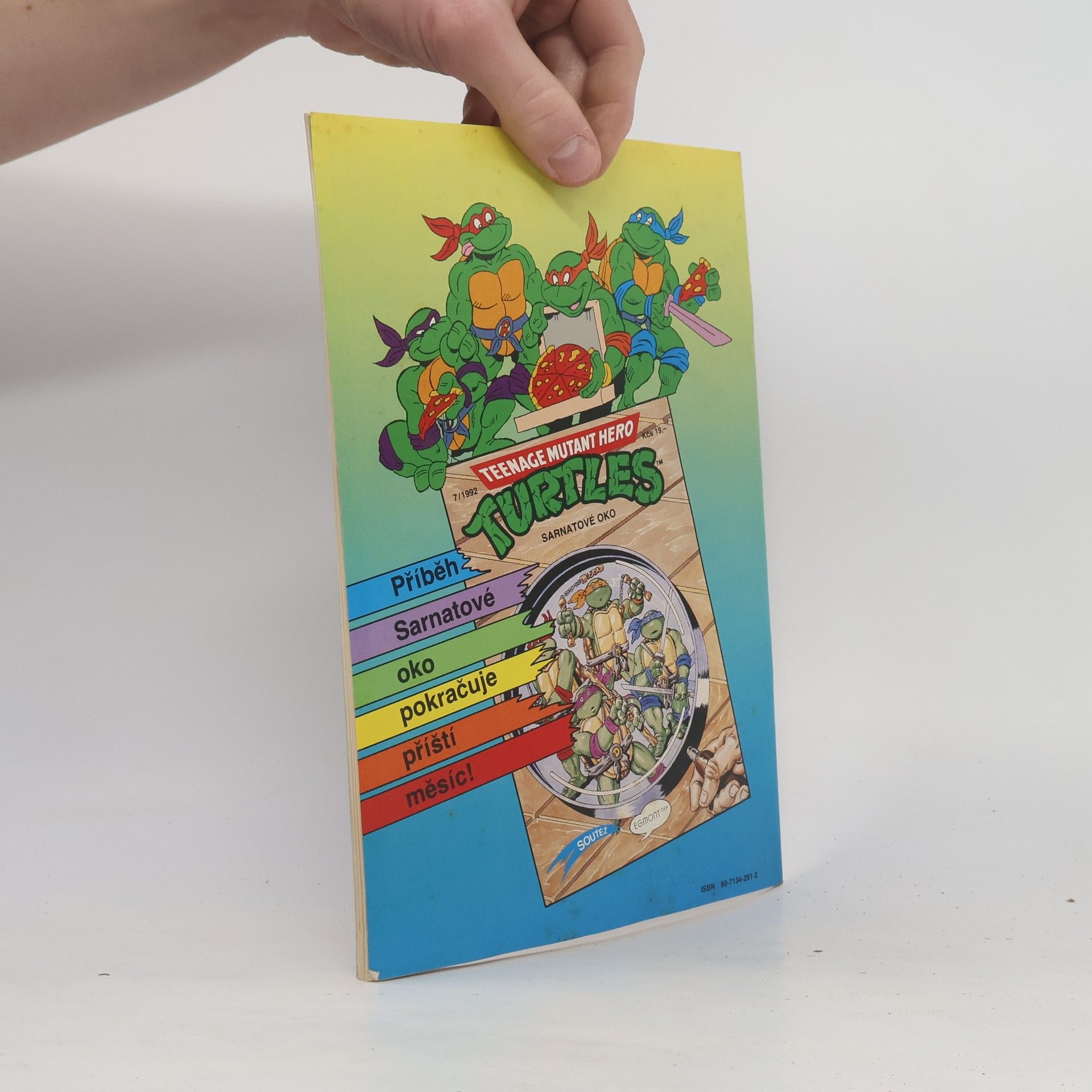 Příběh: Sarnatové oko I Sešit ze serie příběhu neunávných želvých bojovníků a milovníků pizzy - Donatellem, Michelangelem a Raffaelem. A nejen s nimi se setkáte, ale také s April O'Neilovou, atraktivní reportérkou, s Třískou, učitelem starého japonského bojového umění nindžutsu, a samozřejmě s Trhačem, jejich úhlavním nepřítelem, který chce ovládnout celý svět...