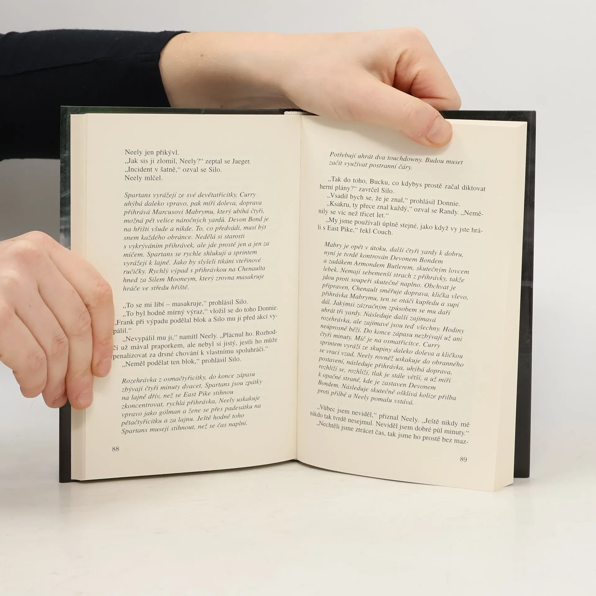 Román Johna Grishama přivádí čtenáře na zelená pole amerického fotbalu, do míst, kde se za vášnivého pokřiku z tribun odehrávají dramata sportovní i lidská. Neely Crenshaw je mladý muž, který zažil okamžiky slávy jako hráčská hvězda. Kvůli slávě však též přišel o životní lásku a vášeň pro sport mu paradoxně rozbila i sen o životní dráze, když byl při jednom ze zápasů vážně zraněn… Jeho protihráčem se stává Eddie Rake, milovaný i zatracovaný trenér, jenž díky své vizi o fotbalovém týmu dostal malé město na mapu Spojených států. Trenér, jemuž se zhroutil svět, když díky jeho drakonickým metodám zemřel jeden z hráčů… A nakonec dojde k osudovému utkání - k zápasu, jehož aktéři ztratí iluze o idolu, ale najdou víru v sebe.