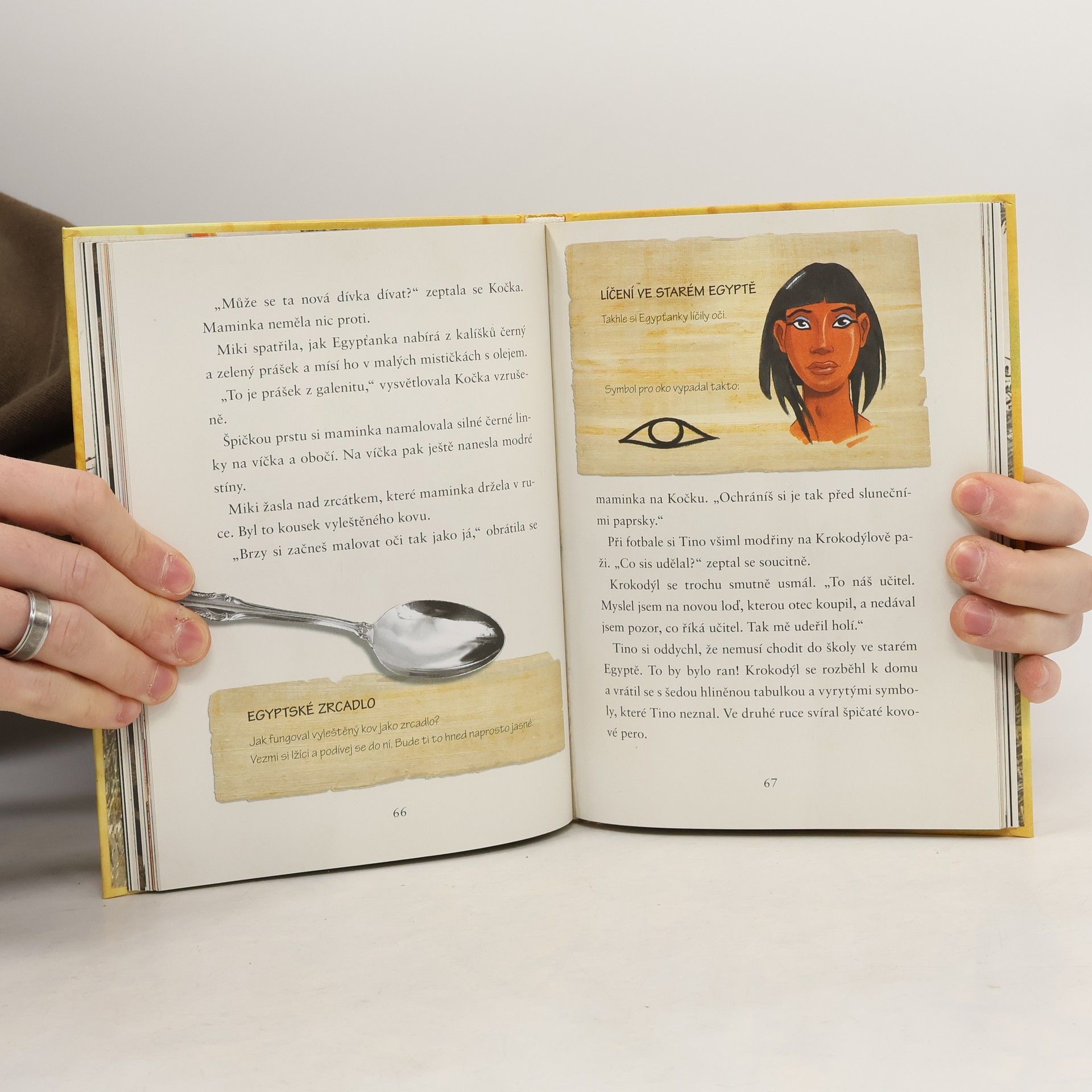 Miki a její bratr Tino jedou s tetou na návštěvu do Egyptského muzea, aby pomohli nešťastnému profesorovi a přišli na kloub záhadám, které se tam dějí. Podaří se jim odhalit tajemství pochodující mumie a tajemného amuletu? Opět přichází na řadu Kolumbus, létající badatelská autoloď, která je přenese do doby starých Egypťanů před 4000 lety. Během krátkého pobytu musí navíc vyřešit záhadné zmizení jejich tety, která je považována za falešnou královnu a hrozí jí smrt. Při cestě se můžeš dozvědět i spoustu zajímavých věcí: Chodily egyptské děti do školy? A jak si hrály? Používali už Egypťané toalety? Co je Údolí králů? Jak se mumifikovali lidé a zvířata? Připrav se i ty na vzrušující cestu do starověkého Egypta! Expedice za faraóny právě začíná!