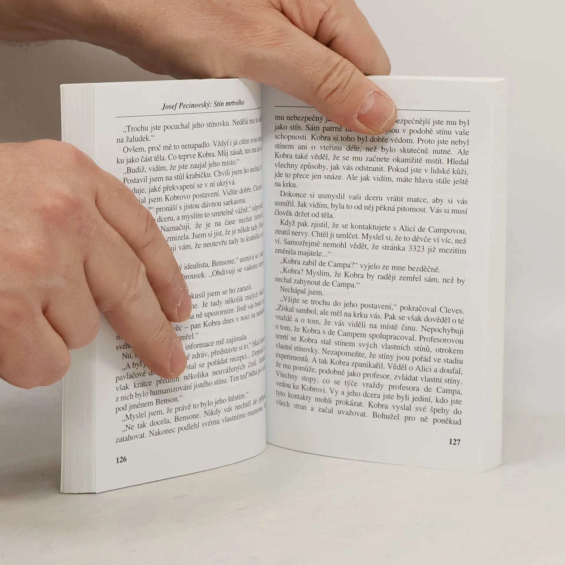 Tento svazek obsahuje díla vydaná samostatně: Stín kobry a Zabít mrtvého Dvě novely vyznačující se dynamickým dějem nabitým událostmi. Stín kobry se odehrává v blízké, blíže neidentifikovatelné budoucnosti, kdy mafiánské praktiky patří k běžným normám a kdy mocní tohoto světa mohou bezmocné oběti zotročit a proměnit je v tajemné, éterické bytosti, nehmotné, ale všudypřítomné stíny. A právě v tomto světě detektivu Bensonovi kdosi unese dceru a žádá po něm, aby se dopustil loupeže… Děj novely Zabít mrtvého se odehrává kdesi v paralelním světě, kde se lidé dožívají stovek let, protože mohou absolvovat desítky reinkarnací, kdy jedinou podmínkou je ihned po zrození zlikvidovat staré a nepotřebné tělo. Ale co se stane, když se takový již téměř mrtvý vzepře svému osudu? Hue Margansonovi se podobná nehoda přihodila, a tak musí svého mrtvého najít dřív, než sám zemře. A to by mohlo být brzy…