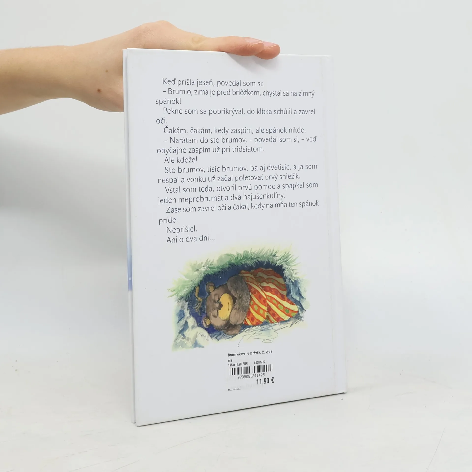 Osem veselých rozprávok o medvedíkovi Brumlíčkovi, ktorý nemôže zaspať zimným spánkom, hoci už vonku začal poletovať prvý sniežik. Spapkal jeden meprobrumát, dva hajušenkulíny, ale spánok nikde. Preto si začne sám rozprávať uspávacie rozprávky o Bertusovi Hubertusovi, o medveďovi Krepdešínovi, aj o predobrom kráľovi Nanukodonozorovi... Zvedavý čitateľ sa dozvie aj veľmi dôležitú vec: čo je to macospacolín. A nájde tu aj sedem veselých uspávaniek a ilustrácie Petra Cpina, na ktorých sa schuti zasmeje. Brumlíčkove rozprávky tvoria prvých osem rozprávok z nedokončeného tretieho zväzku Osmijankových rozprávok. Kniha je vhodná pre deti od 5 rokov. Ilustroval Peter Cpin