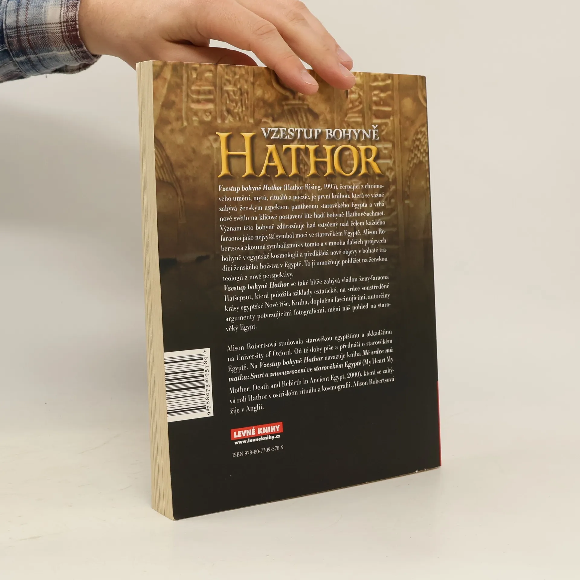 Vzestup bohyně Hathor, čerpající z chrámového umění, mýtů, rituálů a poezie, je první knihou, která se vážně zabývá ženským aspektem pantheonu starověkého Egypta a vrhá nové světlo na klíčové postavení líté hadí bohyně Hathor-Sachmet. Význam této bohyně zdůrazňuje had vztyčený nad čelem každého faraona jako nejvyšší symbol moci ve starověkém Egyptě. Alison Robertsová zkoumá symbolismus v tomto a v mnoha dalších projevech bohyně v egyptské kosmologii a předkládá nové objevy.