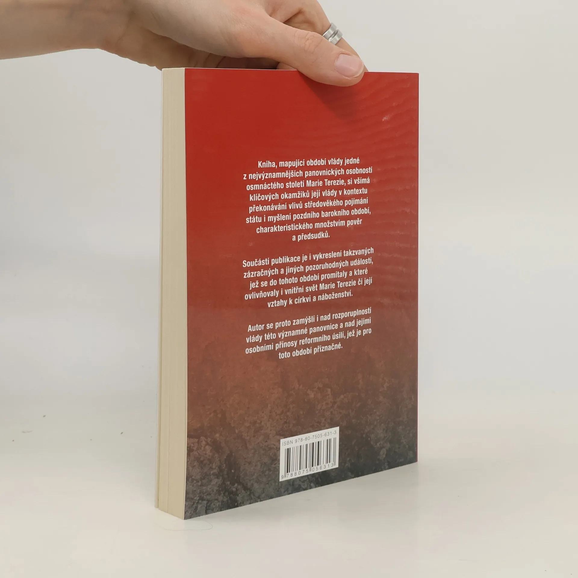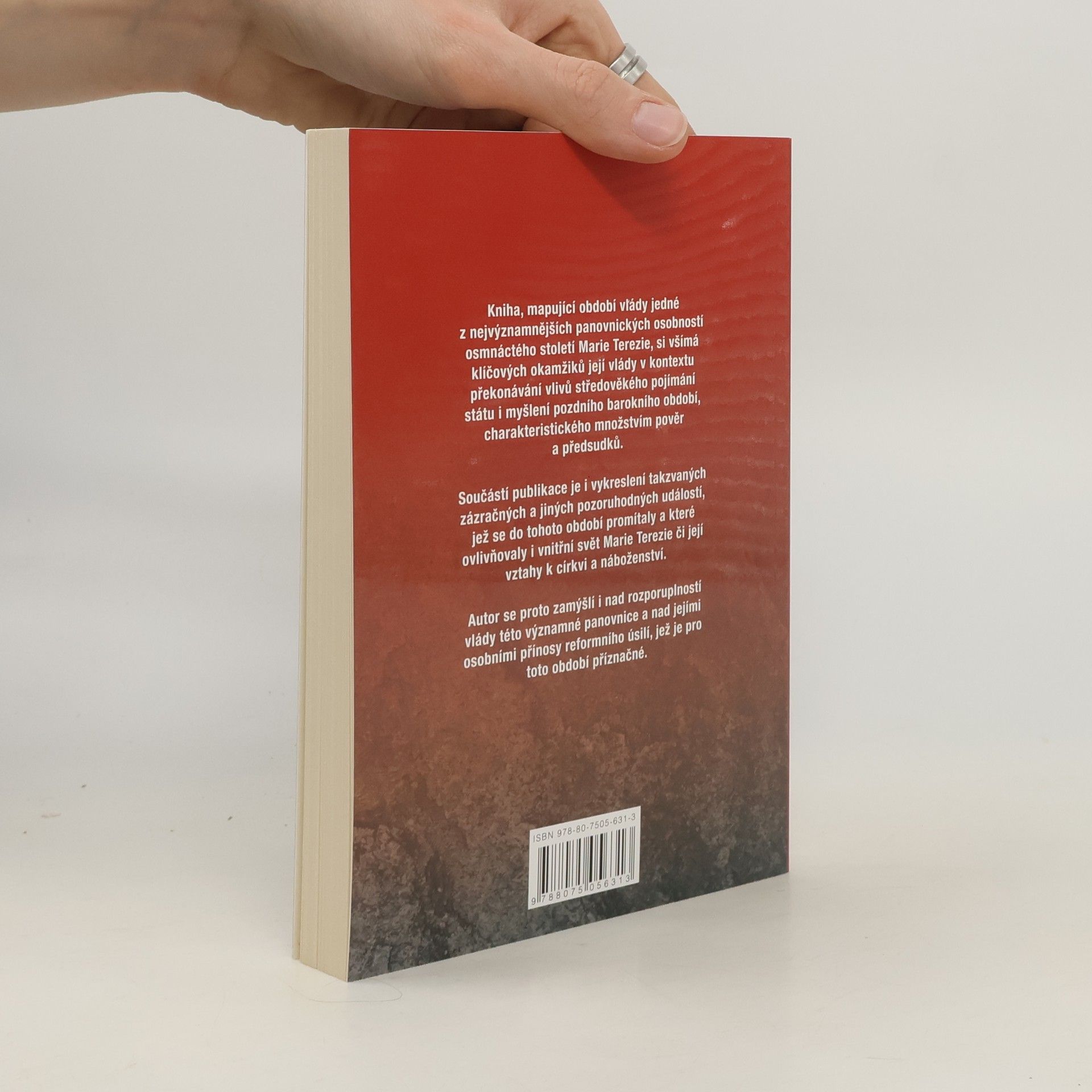 Tato kniha mapuje období vlády jedné z nejvýznamnějších osobností osmnáctého století Marie Terezie. Autor si všímá klíčových okamžiků její vlády v kontextu překonávání vlivů středověkého pojímání státu i myšlení pozdního barokního období, charakteristického množstvím pověr a předsudků. Součástí publikace je i vykreslení takzvaných zázračných a jiných pozoruhodných událostí, jež se do tohoto období promítaly a které ovlivňovaly i vnitřní svět Marie Terezie či její vztahy k církvi a náboženství. Autor se proto zamýšlí i nad rozporuplností vlády této významné panovnice a nad jejími osobními přínosy reformního úsilí, jež je pro toto období příznačné.