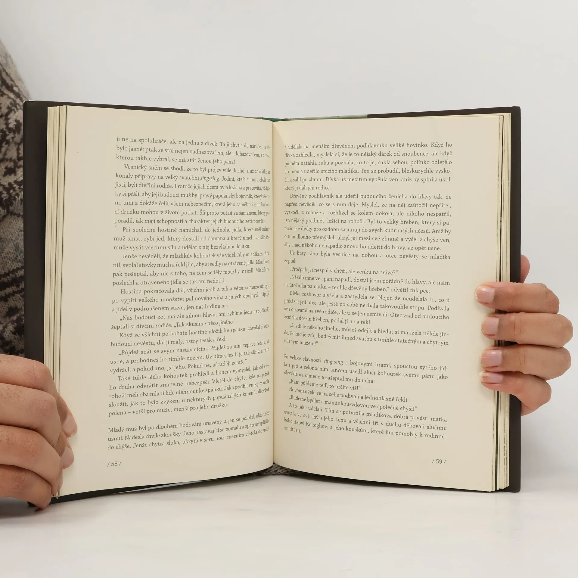 Kniha obsahuje mýty domorodců z druhého největšího ostrova světa, na němž se podle záznamů etnografů hovoří více než devíti sty jazyky. Je svědectvím o různorodosti a exotičnosti kultur přírodních národů nezávislého státu Papua-Nová Guinea a indonéské části ostrova, zvané Západní Papua. Čtenář zde najde vyprávění, založená na výjimečně exotických a drsných reáliích země, kde mnoho kmenů dodnes žije v době kamenné. Součástí souboru jsou vedle tradičních mýtů také současné pohádky. Pro české čtenáře je převyprávěl indonesista Jaroslav Olša, který na Nové Guineji několikrát přebýval.