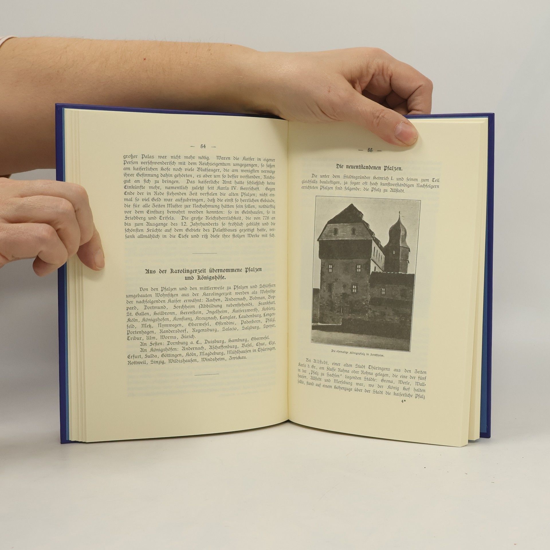 Weitzel, W.: Die deutschen Kaiserpfalzen und Königshöfe. Reprint der Ausgabe von 1905. Reprint Verlag Leipzig Holzminden, 2001. 131 Seiten. Mit einigen Abbildungen. Pappeinband 8° (oktav). Frakturschrift. Einband gering bestoßen, sonst in einwandfreiem Zustand..