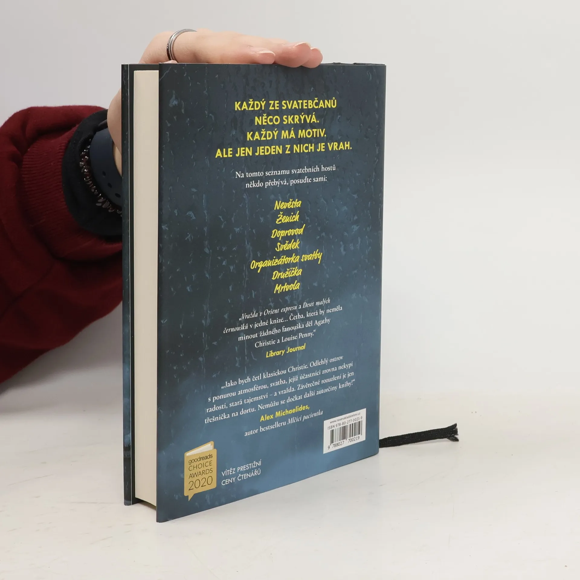 Nevěsta. Doprovod. Svědek. Organizátorka svatby. Družička. Mrtvola. Na ostrov u irského pobřeží se sjíždějí hosté, aby oslavili den, kdy dva lidé spojí své životy v jeden. Ženich: televizní hvězda na vzestupu, pohledný a okouzlující. Nevěsta: majitelka časopisu, inteligentní a ambiciózní. Hvězdná svatba jako ze žurnálu: šaty od návrháře, odlehlé místo, luxusní výslužka, speciální whisky. Občas tu sice vypadává signál a moře vypadá trochu neklidně, ale vše je naplánováno do sebemenšího detailu a poběží to jako na drátkách. Dokonalost je ale výsadou plánů, lidé jsou příliš lidští. Jen co bouchne šampaňské a rozpoutá se všeobecné veselí, s gratulacemi se začnou mísit staré křivdy a malicherná žárlivost. Ženichovi bývalí spolužáci se pustí do pijácké hry ze školních let. Družička si ne zcela náhodnou poničí šaty. Nevěstin nejstarší přítel pronese až nevhodně láskyplný přípitek. A pak se objeví tělo. Kdo novomanželům nepřál štěstí? A co je snad ještě důležitější, proč?