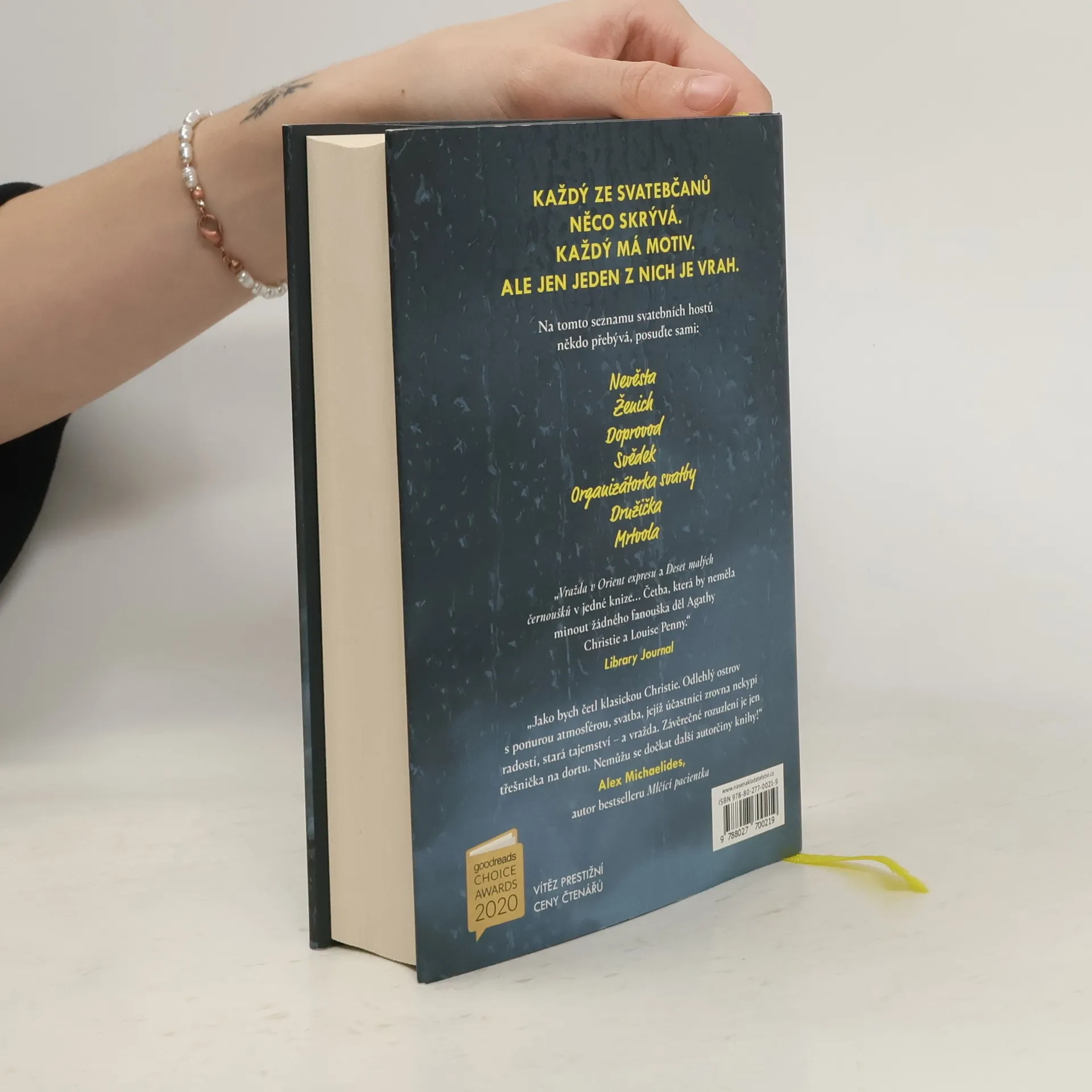 Nevěsta. Doprovod. Svědek. Organizátorka svatby. Družička. Mrtvola. Na ostrov u irského pobřeží se sjíždějí hosté, aby oslavili den, kdy dva lidé spojí své životy v jeden. Ženich: televizní hvězda na vzestupu, pohledný a okouzlující. Nevěsta: majitelka časopisu, inteligentní a ambiciózní. Hvězdná svatba jako ze žurnálu: šaty od návrháře, odlehlé místo, luxusní výslužka, speciální whisky. Občas tu sice vypadává signál a moře vypadá trochu neklidně, ale vše je naplánováno do sebemenšího detailu a poběží to jako na drátkách. Dokonalost je ale výsadou plánů, lidé jsou příliš lidští. Jen co bouchne šampaňské a rozpoutá se všeobecné veselí, s gratulacemi se začnou mísit staré křivdy a malicherná žárlivost. Ženichovi bývalí spolužáci se pustí do pijácké hry ze školních let. Družička si ne zcela náhodnou poničí šaty. Nevěstin nejstarší přítel pronese až nevhodně láskyplný přípitek. A pak se objeví tělo. Kdo novomanželům nepřál štěstí? A co je snad ještě důležitější, proč?