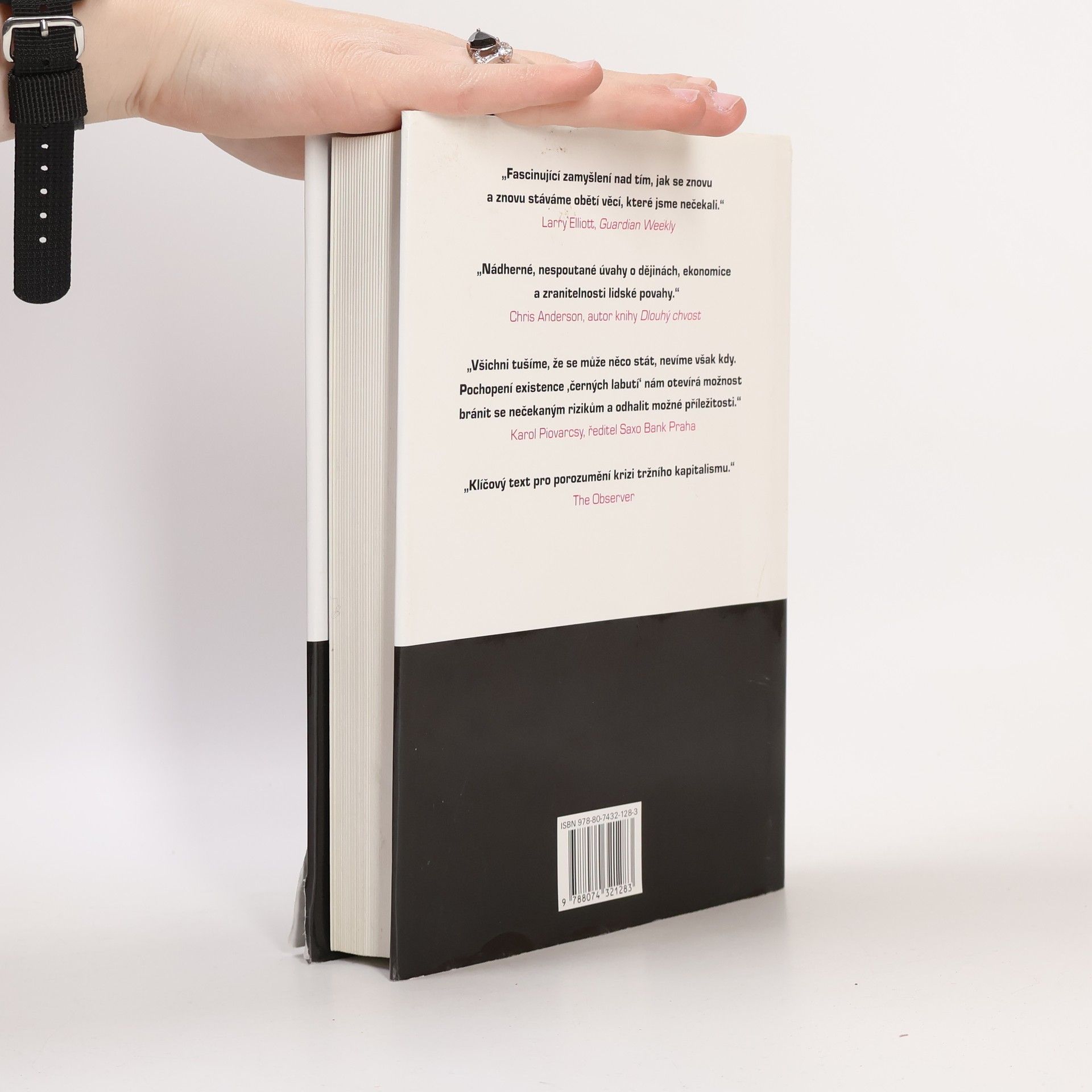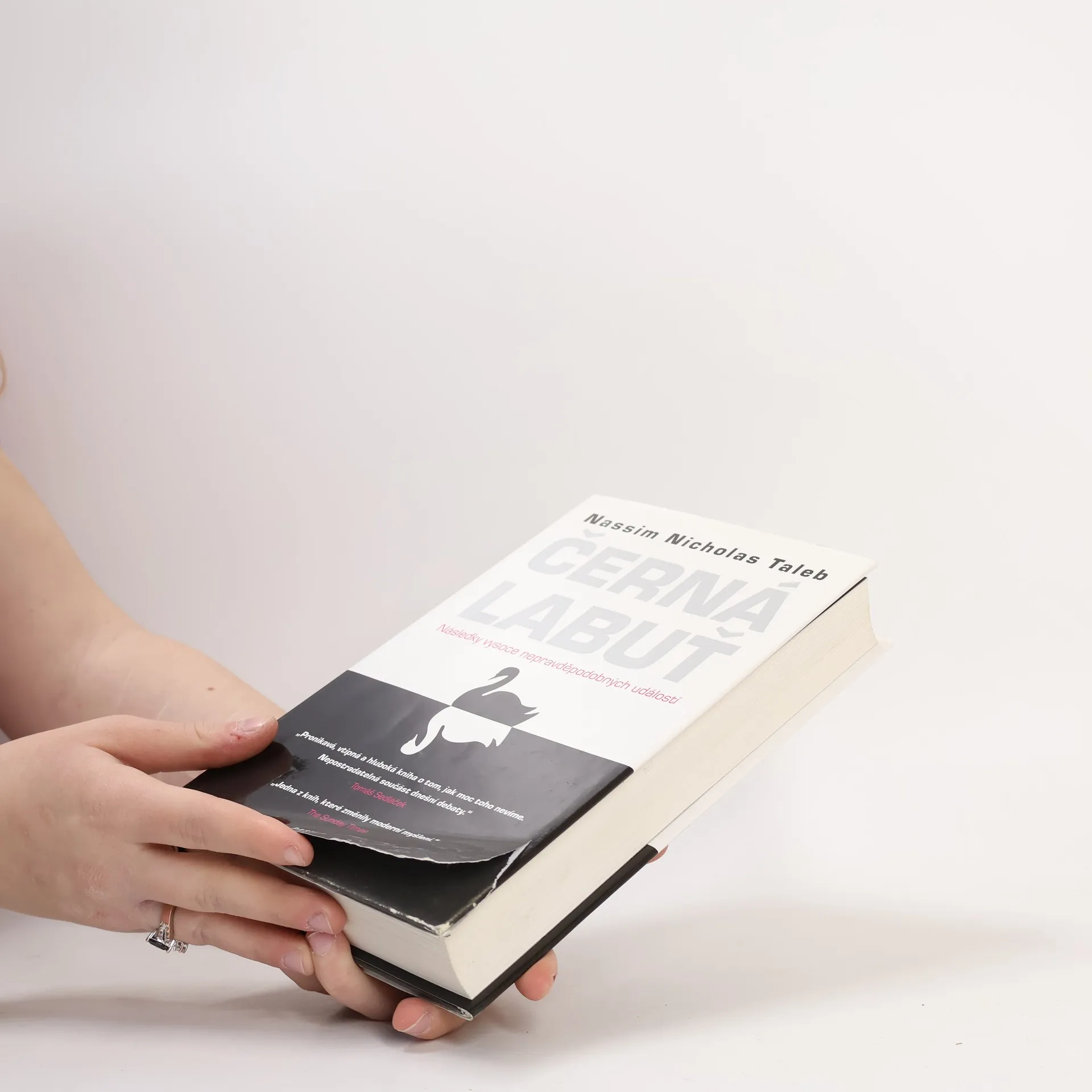 Následky vysoce nepravěpodobných událostí Bestseller amerického akademika a investičního poradce libanonského původu analyzuje fenomén „černých labutí“, tj. nepředvídaných jevů a událostí s významným dopadem na život jedince nebo celé společnosti, jakým byl např. teroristický útok z 11. září 2001, fenomenální úspěch společnosti Google či nedávná globální finanční a ekonomická krize. Autor – jeden z mála odborníků, kteří nástup krize předvídali – věří, že příčinou naší nepřipravenosti na podobné zlomové události je především setrvačnost našeho myšlení v podobě přílišné důvěry ve statistiky a prognostiky, přehnaného kategorizování, hledání „logiky“ vývoje či soustřeďování se na specifika tam, kde bychom měli přemýšlet spíše v obecných kontextech. Jeho kniha, vyzývající k tomu, abychom přehodnotili náš ustálený pohled na svět a přiznali si, jak málo o něm víme, patří dnes k nejdiskutovanějším pracím ve svém žánru, deníkem Times byla označena za jedno z nejvlivnějších děl posledních šedesáti let a díky autorovu širokému rozhledu, smyslu pro humor a zdravé provokativnosti je i velkým čtenářským zážitkem.