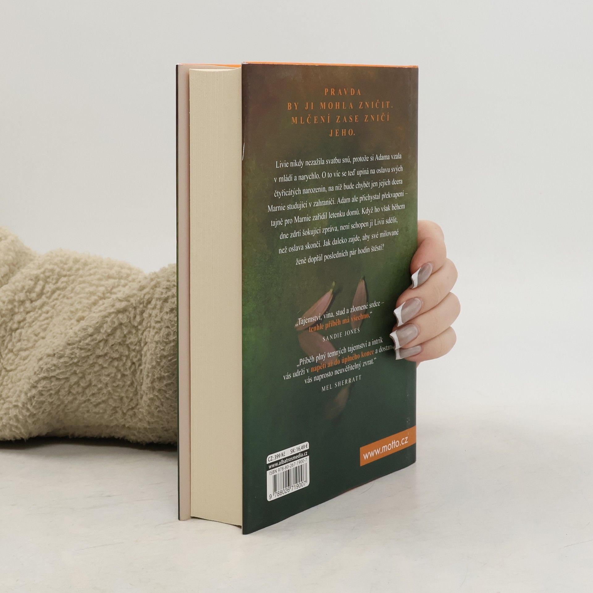 Pravda by ji mohla zničit. Mlčení zase zničí jeho. Livia nikdy nezažila svatbu snů, protože si Adama vzala v mládí a narychlo. O to víc se teď upíná na oslavu svých čtyřicátých narozenin, na níž bude chybět jen jejich dcera Marnie studující v zahraničí. Adam ale přichystal překvapení – tajně pro Marnie zařídil letenku domů. Když ho však během dne zdrtí šokující zpráva, není schopen ji Livii sdělit, než oslava skončí. Jak daleko zajde, aby své milované ženě dopřál posledních pár hodin štěstí?