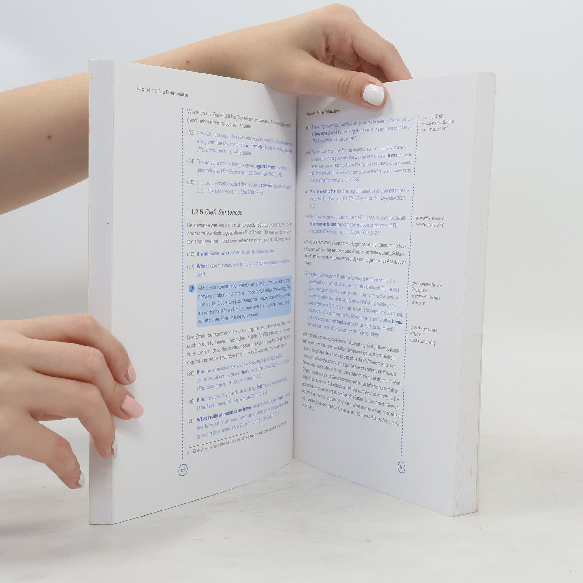 Das Beherrschen der Grammatik ist unerlässlich, um im Englischen kompetent, gewandt und rhetorisch effektiv zu kommunizieren. Sowohl Studierende als auch Fach- und Führungskräfte aus der Wirtschaft finden in diesem benutzerfreundlichen Lehr- und Übungsbuch: * die wichtigsten Regeln und Besonderheiten aus den zentralen Themenbereichen der englischen Grammatik * mehrere hundert Beispielsätze aus der Wirtschaftspresse * gezielte Übungen zur Wiederholung und Vertiefung * einen Lösungsteil, der das Selbststudium erleichtert. Die zweite, aktualisierte und erweiterte Auflage bietet darüber hinaus: * Über 340 neue, aktuelle Beispiele * 60 zusätzliche, neue Übungssätze * Cartoons zur Illustration von Grammatik-Themen