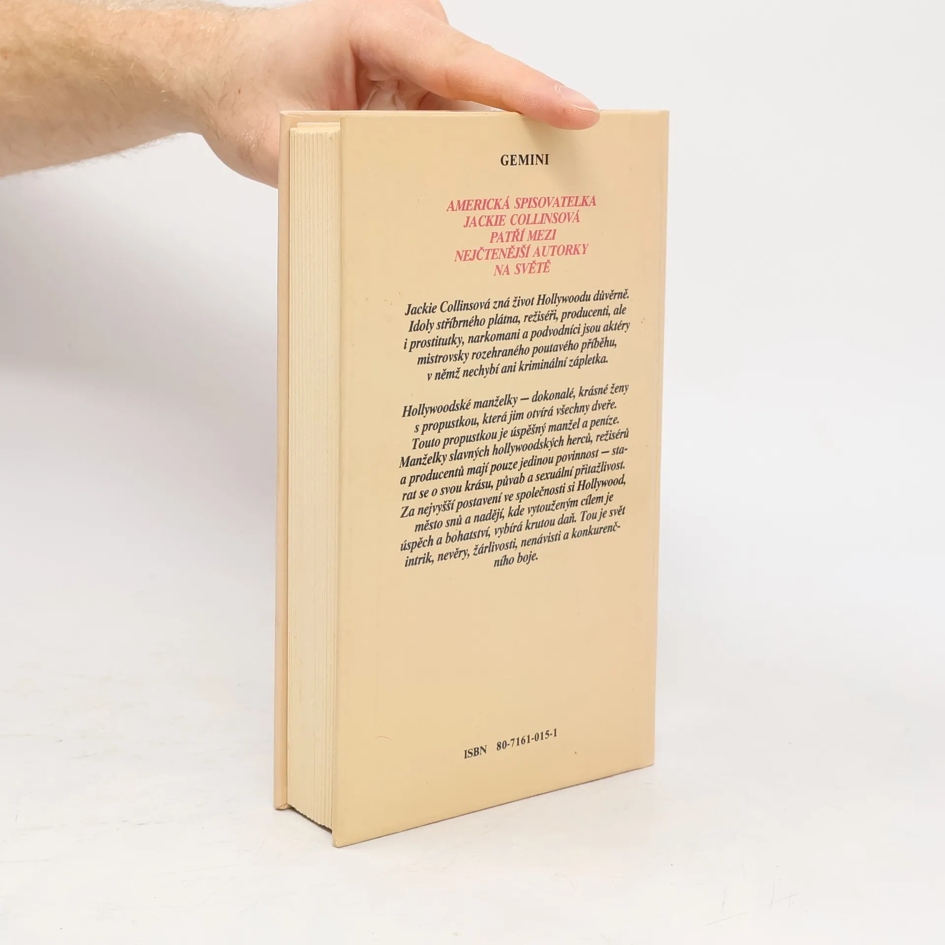 Román z prostředí hollywoodské filmové smetánky, kde smysl života tvoří úspěch, sex, orgie a společenské skandály. Široké spektrum postav, které jsou si navzájem velice podobné, odlišují zejména jejich minulé sexuální zkušenosti a zážitky, případně jejich křivolaká cesta k úspěchu, která je nutí používat všelijaké nekalé prostředky k dosažení právě aktuálních cílů. Autorka zjevně nemá žádné literární ambice. Hollywoodská serie 1. díl - Hollywoodské manželky 2. díl - Hollywoodští manželé 3. díl - Hollywoodské děti 4. díl - Nová generace hollywoodských žen 5. díl - Hollywoodské rozvody