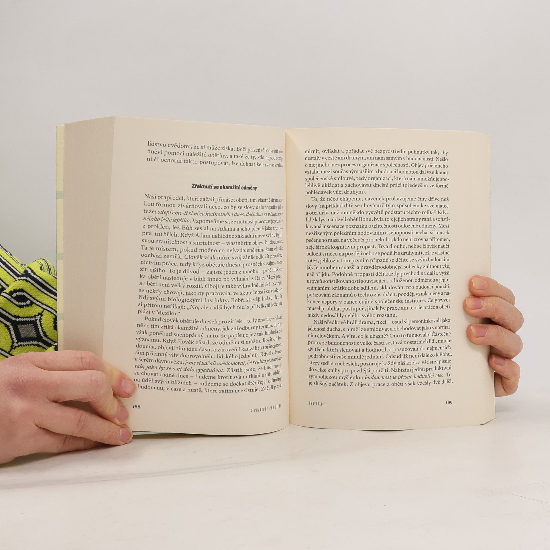 Co by měl znát každý člověk v moderním světě? ptá se renomovaný psycholog Jordan B. Peterson a jeho odpověď na tuto nesnadnou otázku v sobě jedinečně propojuje odvěké pravdy a ohromující objevy nejsoučasnějšího vědeckého výzkumu. Peterson dokáže být vtipný a překvapivý a vždy objevný. Vysvětluje nám, proč nebránit dětem v nebezpečných kouscích na skateboardu, jaký hrozný osud čeká člověka, který příliš rychle kritizuje, který je pomstychtivý, nenávistný a arogantní; a proč bychom měli pohladit každou kočku, kterou potkáme na ulici. Peterson rozebírá (sebe)kázeň a svobodu, dobrodružství a zodpovědnost, smysl života i víru v Boha; pouští se do překvapivých odboček a zase se vrací a destiluje poznání o lidském charakteru a osudu do dvanácti navenek jednoduchých pouček, za kterými se skrývají hluboké poznatky a dalekosáhlá poučení o tom, jak vést správný život. Rozbíjí otřepané poučky týkající se vědy, víry a lidské přirozenosti a proměňuje a povznáší mysl i ducha svých čtenářů.
