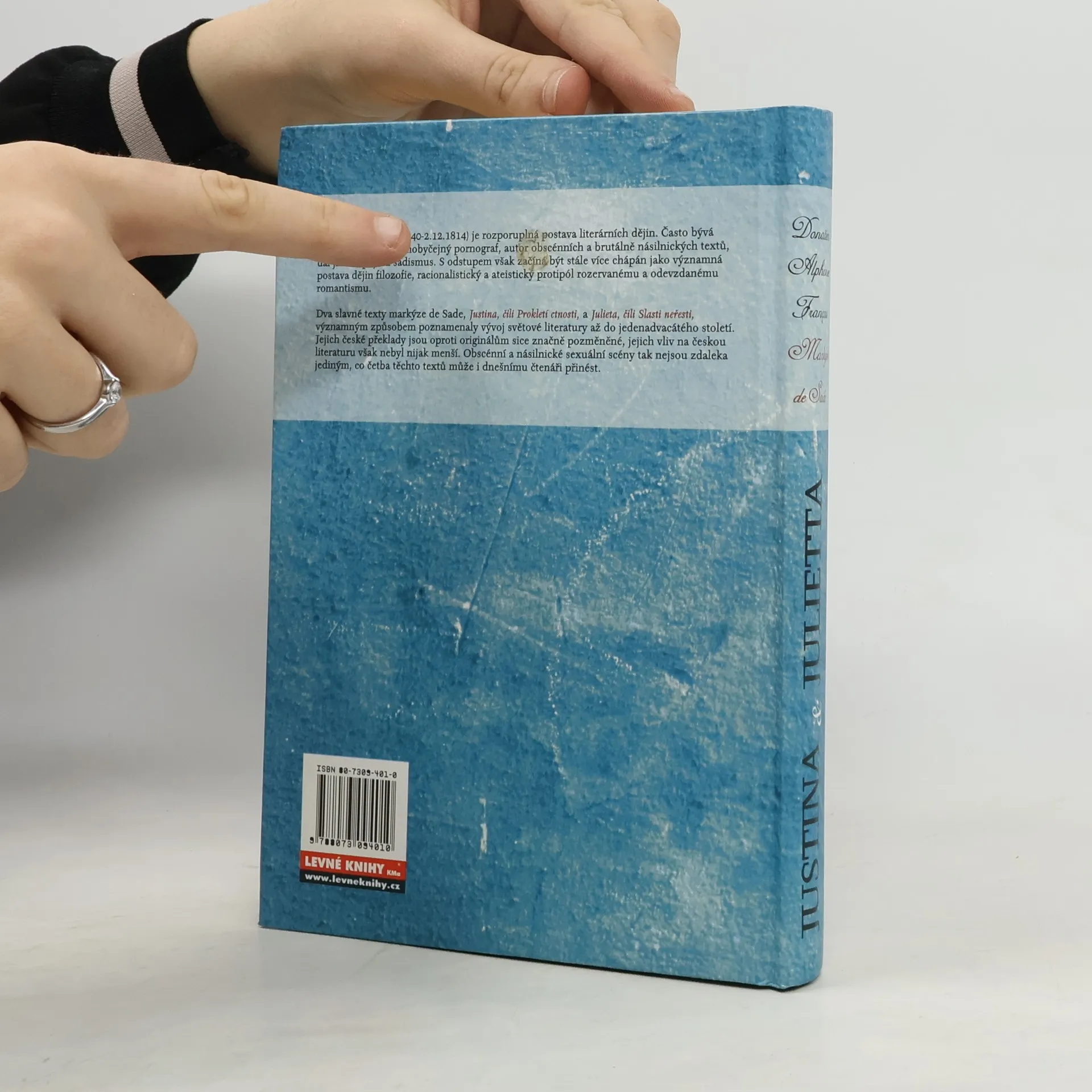 Dva slavné texty markýze de Sade, Justina, čili Prokletí ctnosti, a Julieta, čili Slasti neřesti, významným způsobem poznamenaly vývoj světové literatury až do jedenadvacátého století. Jejich české překlady jsou oproti originálům sice značně pozměněné, jejich vliv na českou literaturu však nebyl nijak meší. Obscénní a násilnické sexuální scény tak nejsou zdaleka jediným, co četba těchto textů může i dnešnímu čtenáři přinést...
