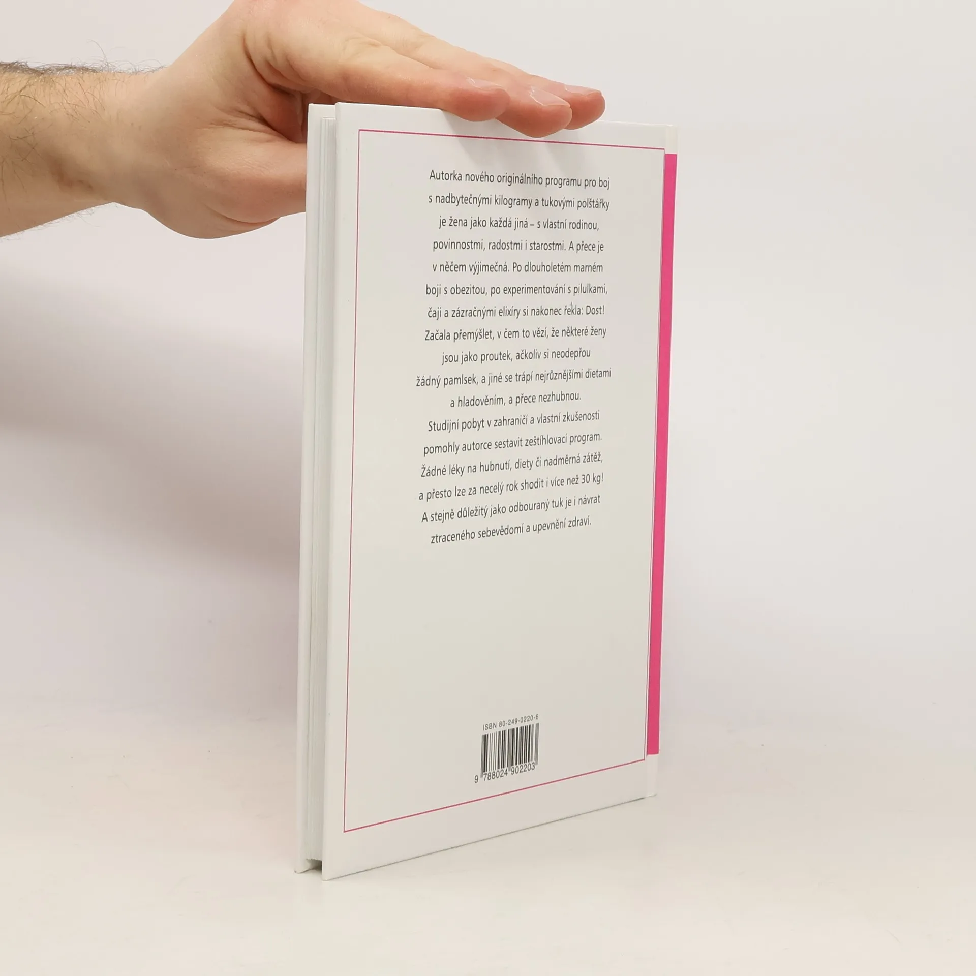 Hubneme v pohodě, bez tabletek, diet a namáhavých cviků Autorka nového originálního programu pro boj s nadbytečnými kilogramy a tukovými polštářky je žena jako každá jiná - s rodinou, povinnostmi, radostmi i starostmi. Po dlouholetém marném boji s obezitou, po experimentech s pilulkami, čaji a zázračnými elixíry si řekla: Dost! a začala přemýšlet, v čem to vězí, že některé ženy jsou jako proutek, ačkoliv si neodepřou žádný pamlsek, a jiné se trápí dietami, a přece nezhubnou. Studijní pobyt v zahraničí i vlastní zkušenosti jí pomohly sestavit zeštíhlovací program. Žádné léky na hubnutí, diety či nadměrná zátěž, a přesto lze za necelý rok shodit i více než 30 kg! Stejně důležitý jako odbouraný tuk je i návrat ztraceného sebevědomí a upevnění zdraví.... celý text